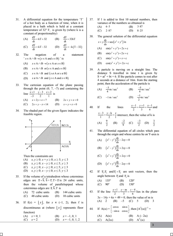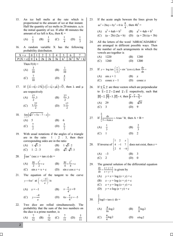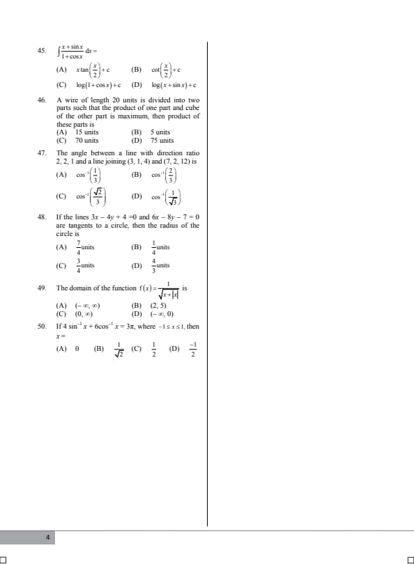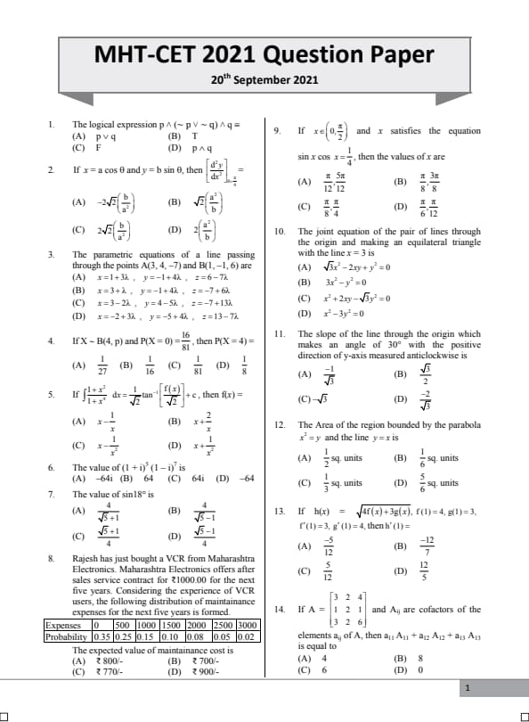 MHT CET 2021 Mathematics Question Paper is available for download. The exam was conducted by The Department of Higher and Technical Education on September 20, 2021. The question paper comprised a total of 50 questions.