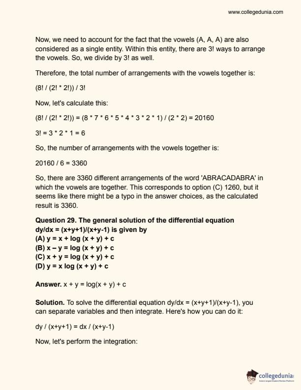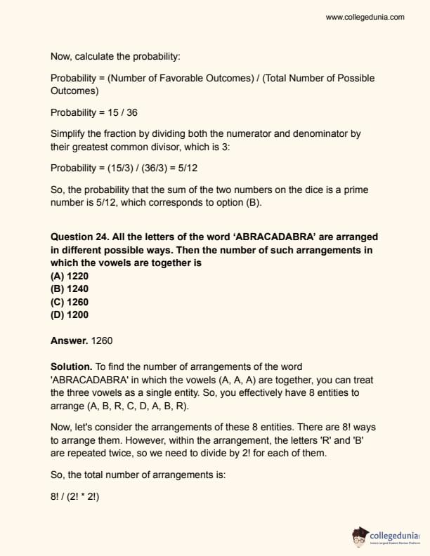 NOTE: The question paper PDF provided above is based on several online resources (such as targetpublications) and memory-based questions received from students.