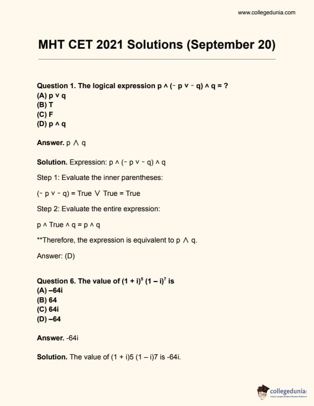 | MHT CET 2021 Mathematics Question Paper PDF | MHT CET 2021 Mathematics Solutions PDF |