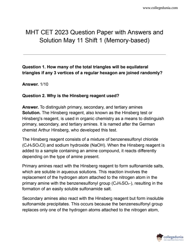 MHT CET 2023 11 May Shift 1 Question Paper is available here for download. MHT CET 2023 question paper comprises 150 MCQs carrying a total weightage of 300 marks.
