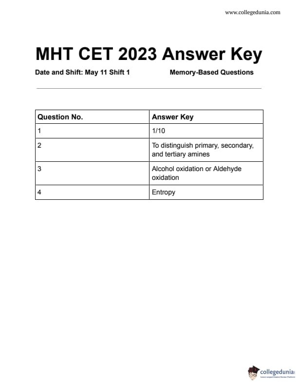 | MHT CET 2023 Question Paper PDF | MHT CET 2023 Answer Key PDF |