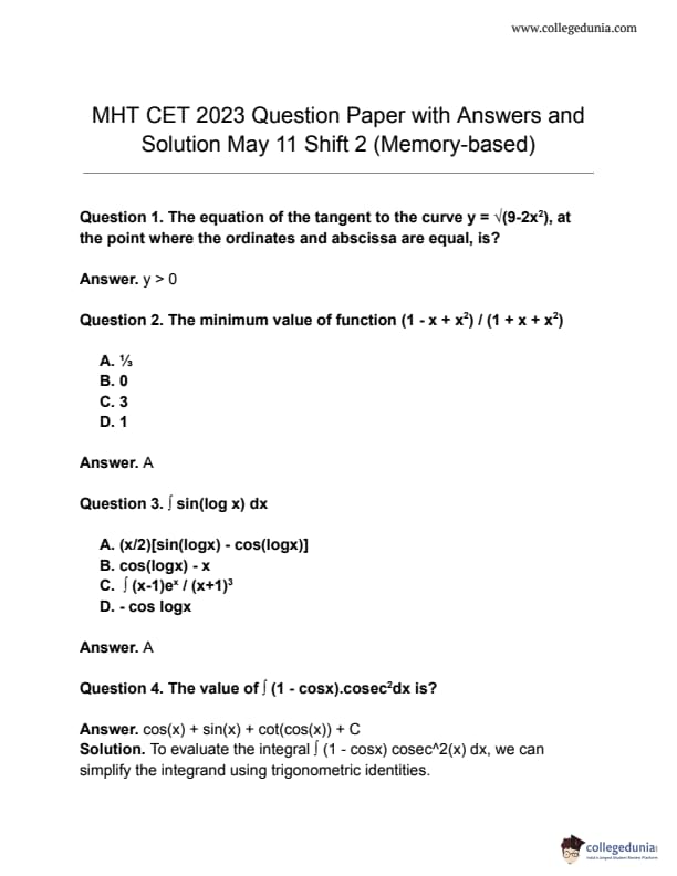 MHT CET 2023 11 May Shift 2 Question Paper PDF Download