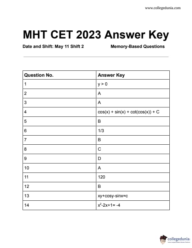 | MHT CET 2023 Question Paper PDF | MHT CET 2023 Answer Key PDF |