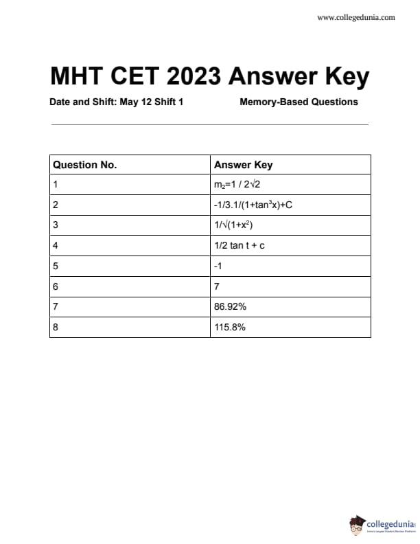 | MHT CET 2023 Question Paper PDF | MHT CET 2023 Answer Key PDF |