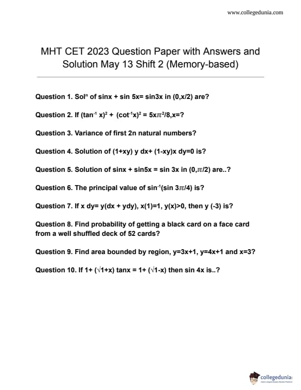 MHT CET 2023 13 May Shift 2 Question Paper PDF Download