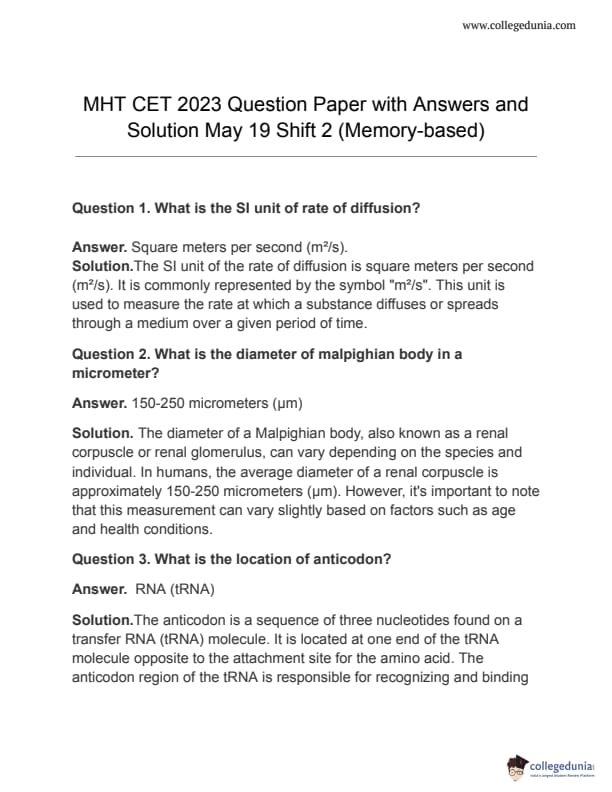 MHT CET 2023 19 May Shift 2 Question Paper PDF Download