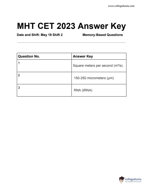 | MHT CET 2023 Question Paper PDF | MHT CET 2023 Answer Key PDF |