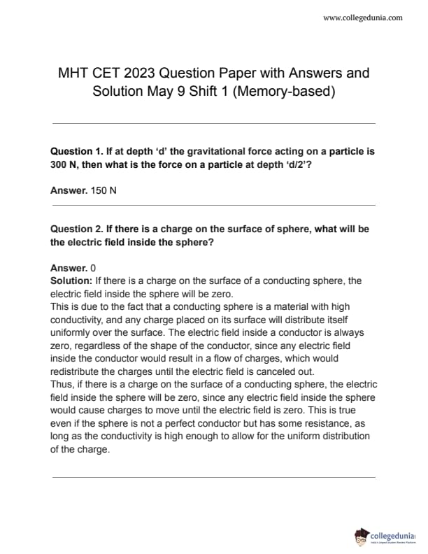 | MHT CET 2020 Question Paper | MHT CET 2019 Question Paper |