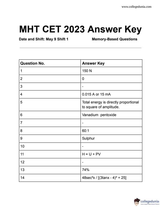 | MHT CET 2023 Question Paper PDF | MHT CET 2023 Answer Key PDF |