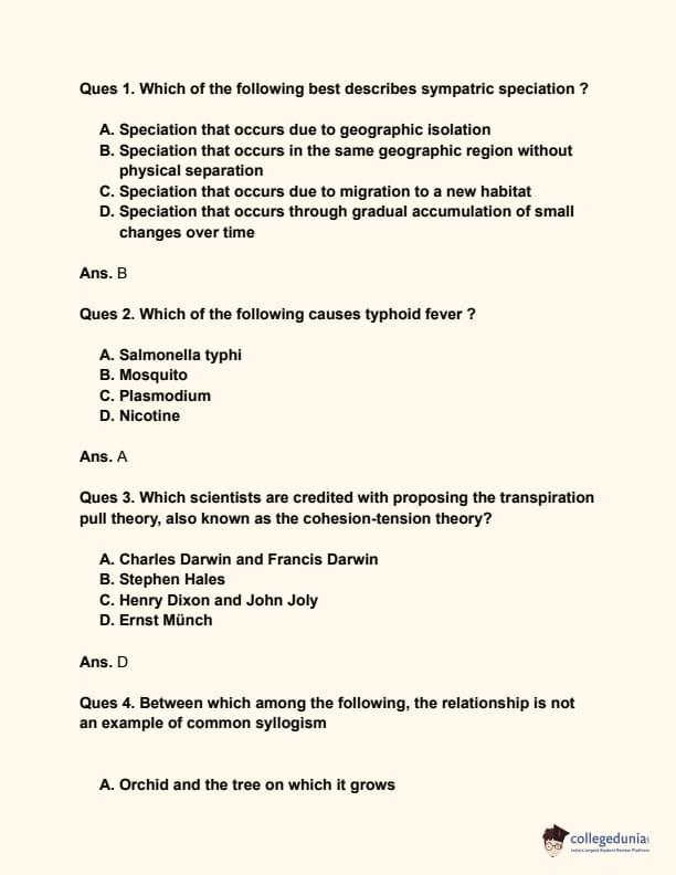 - (D) Incorrect: Gradual accumulation of changes over time is part of speciation, but does not specifically define sympatric speciation.