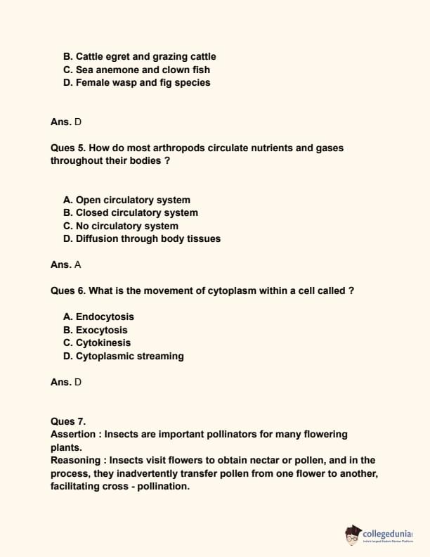 Assertion: Insects are important pollinators for many flowering plants. Reasoning: Insects visit flowers to obtain nectar or pollen, and in the process, they inadvertently transfer pollen from one flower to another, facilitating cross-pollination.