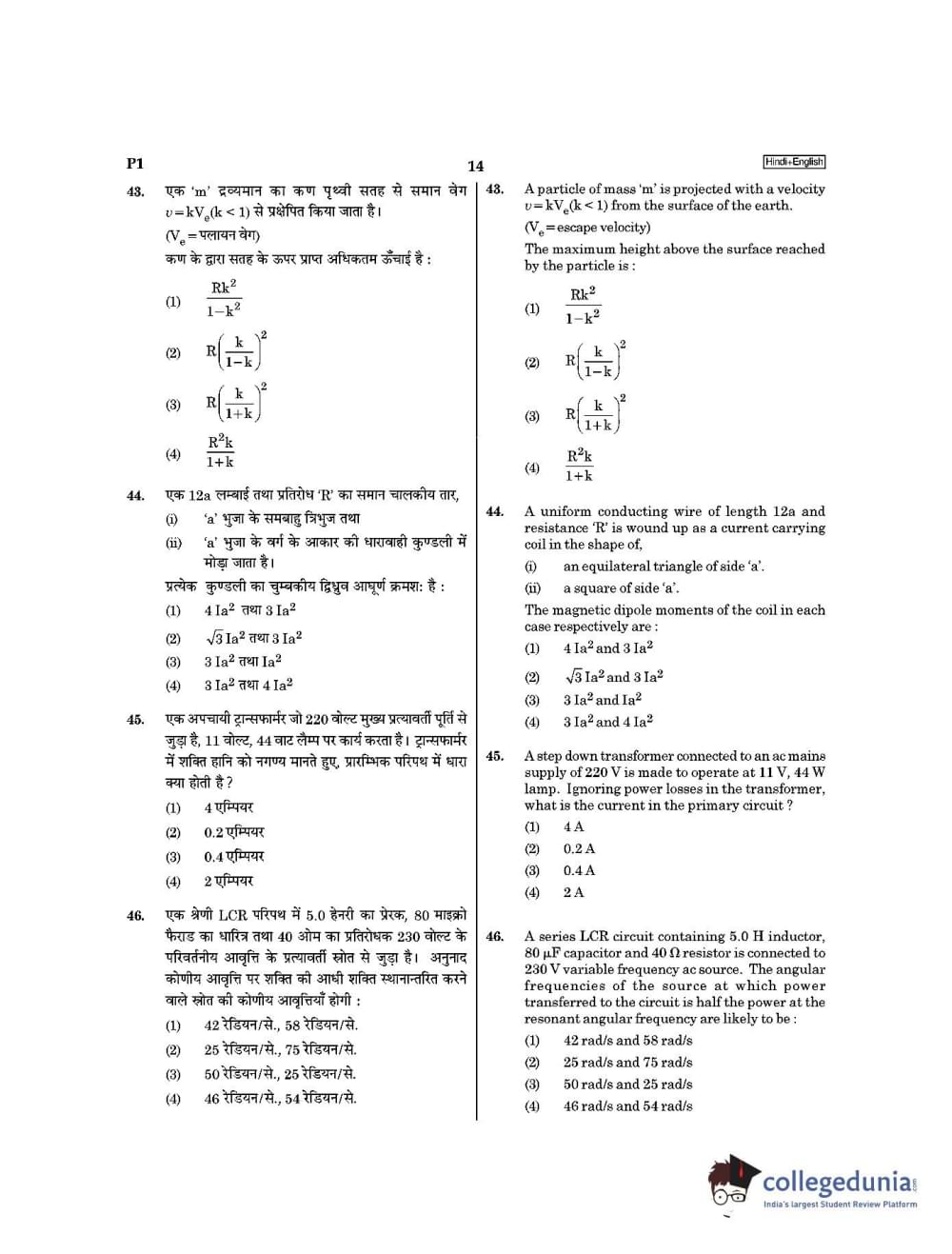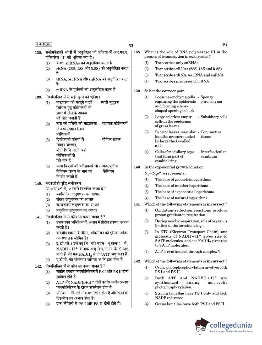 | NEET 2021 Question Paper P1 PDF Hindi | NEET 2021 Answer Key P1 PDF Hindi |