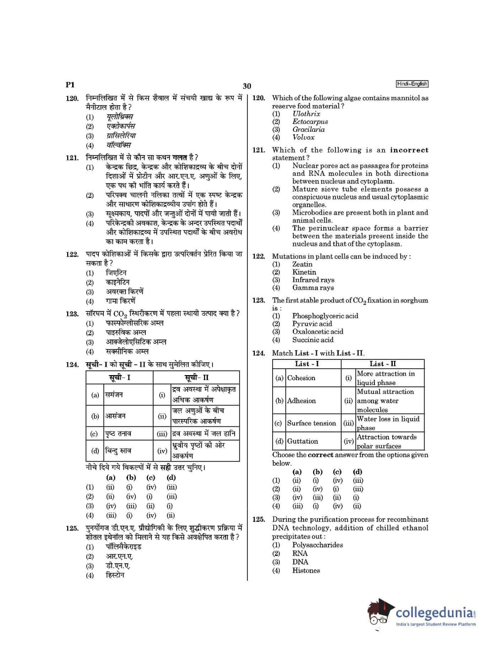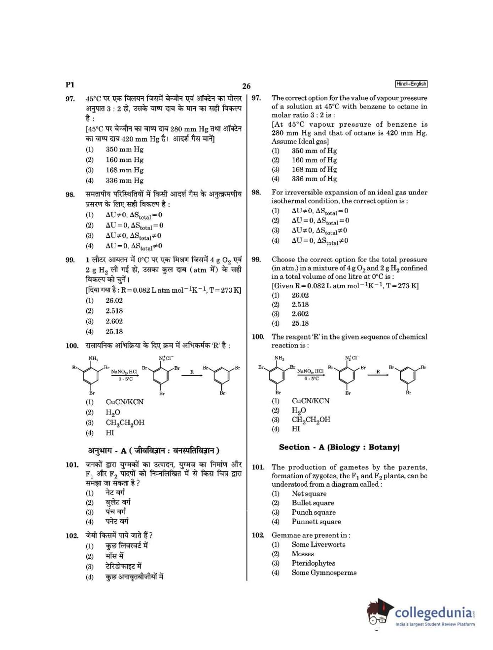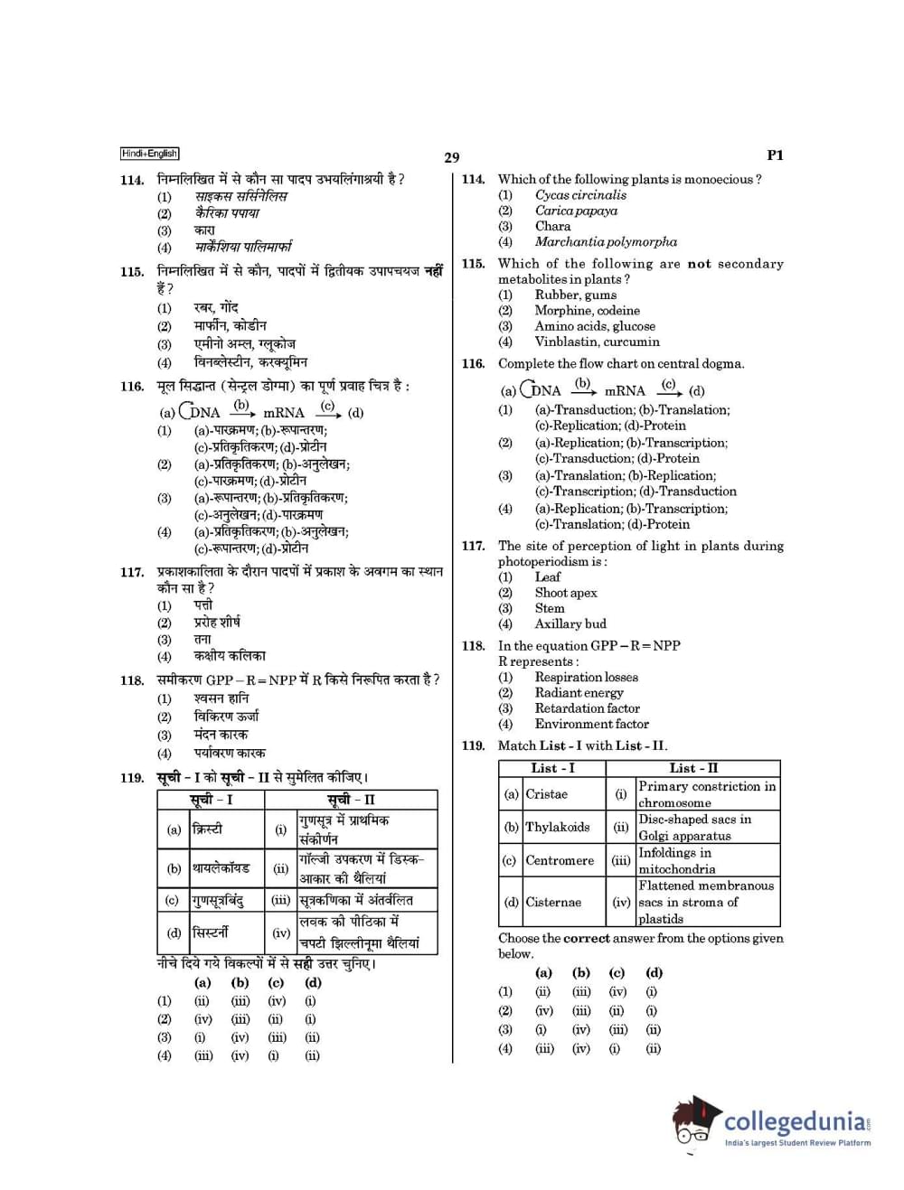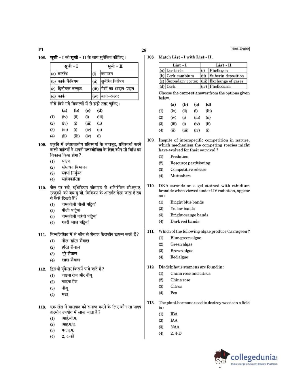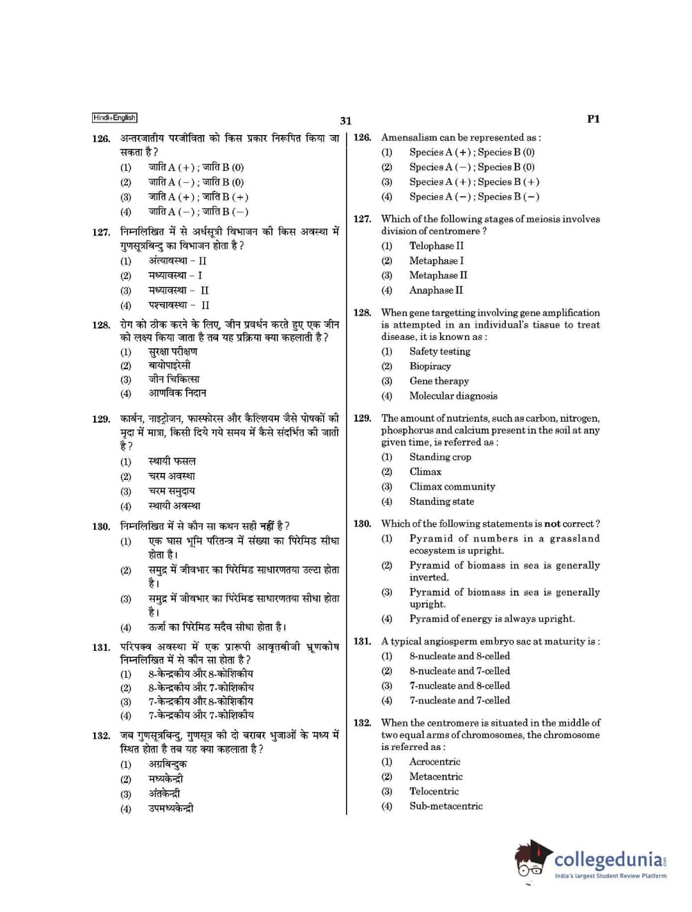 | Number of sections | 3 (Physics, Chemistry and Biology) | 4 (Physics, Chemistry, Botany,Zoology) |