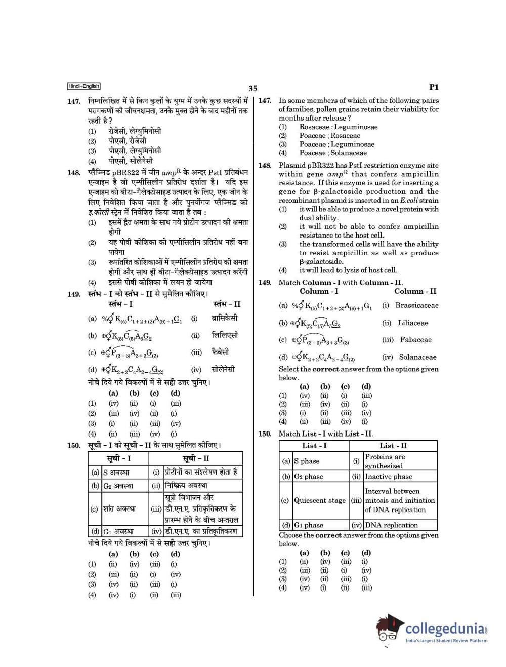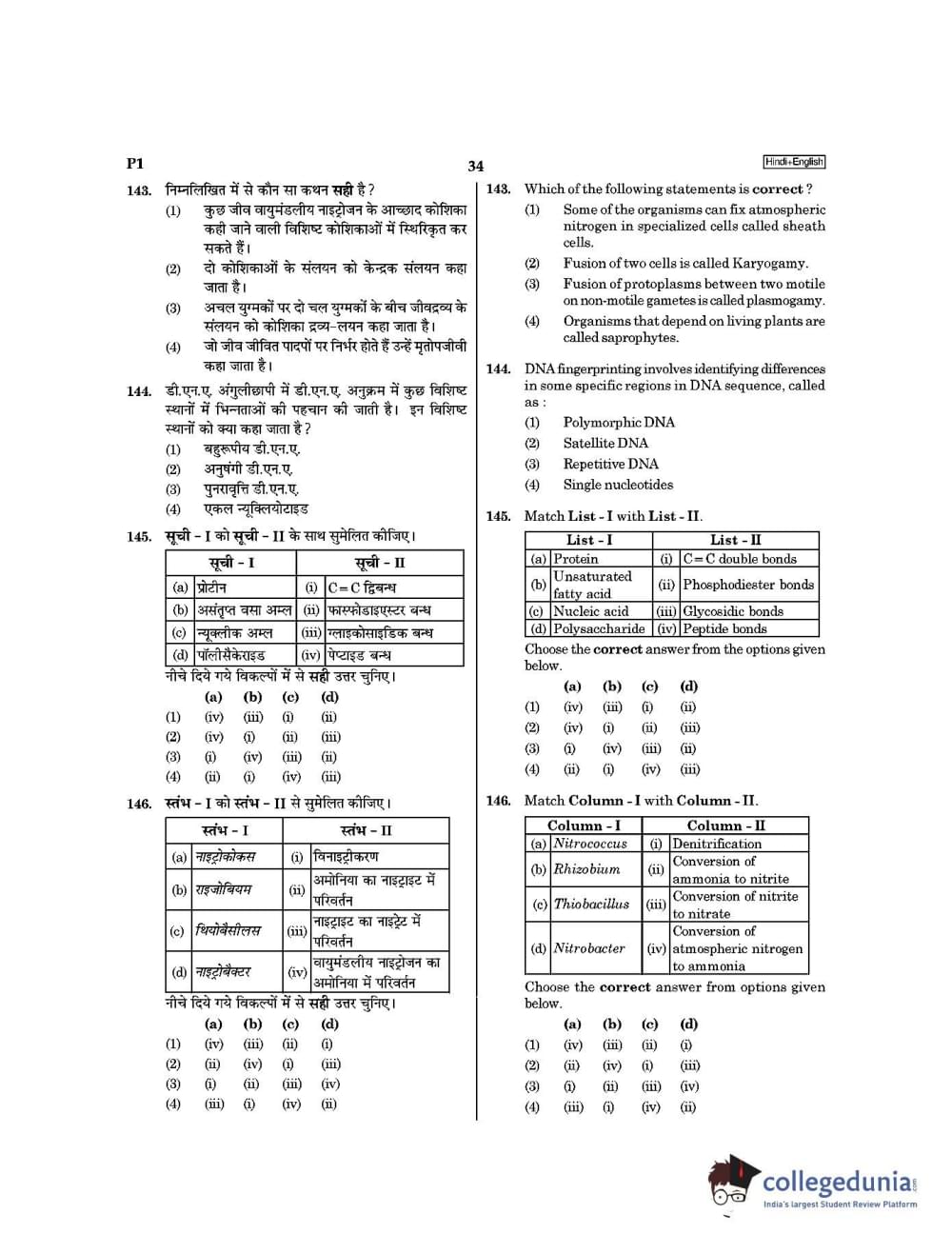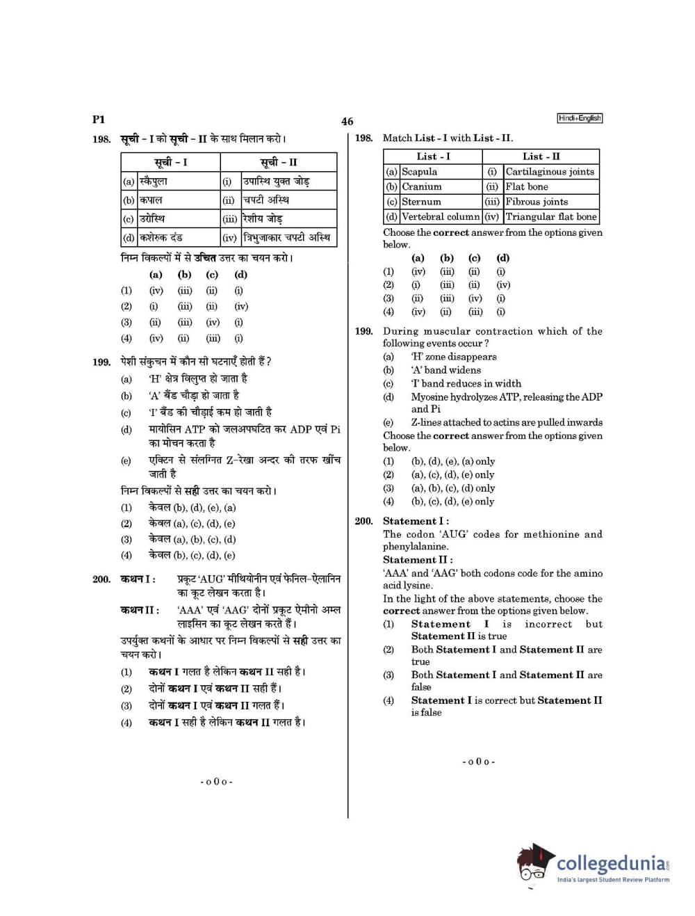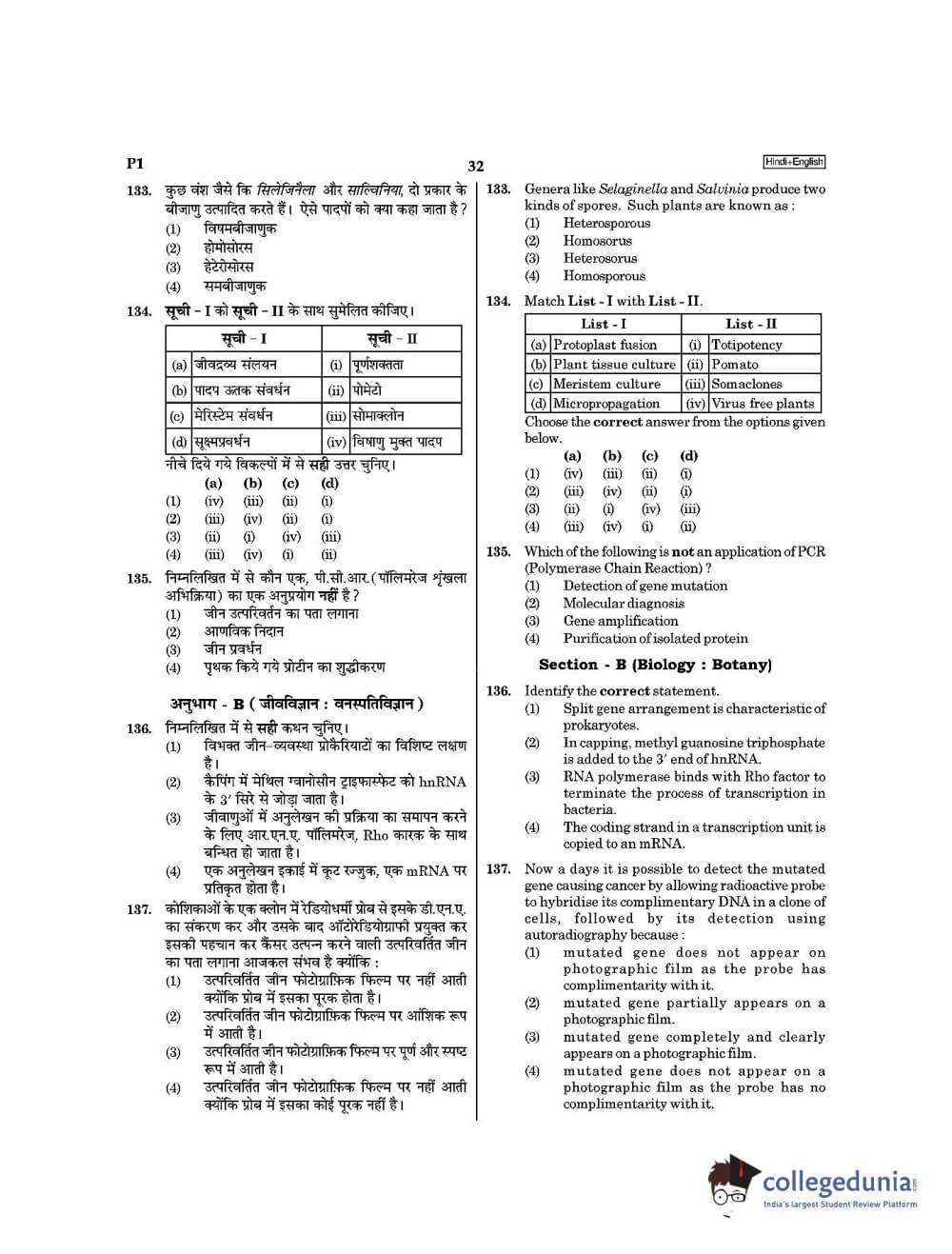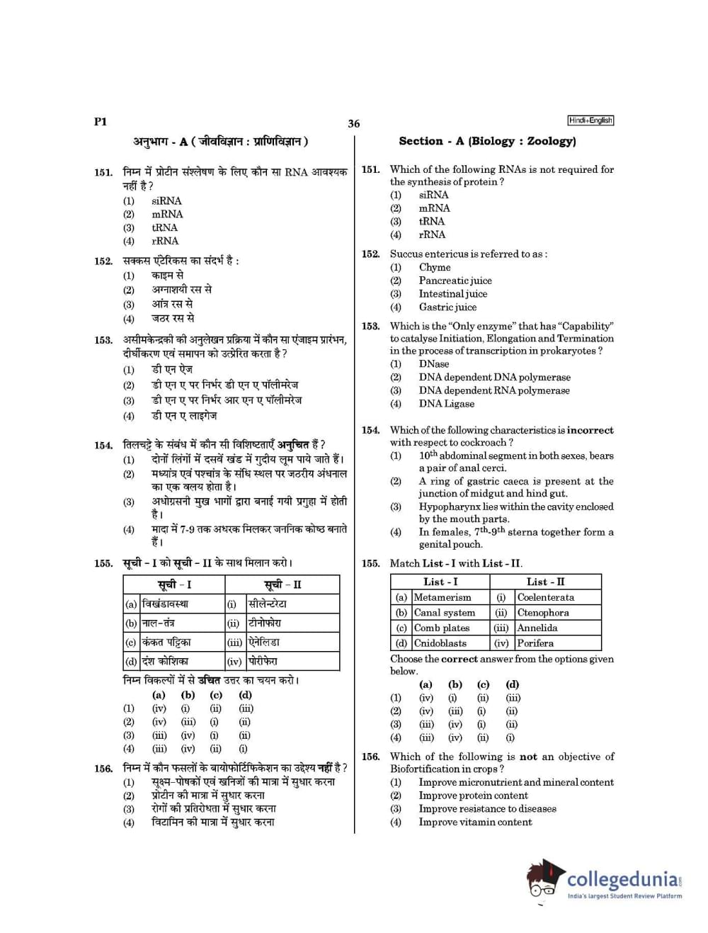 | Number of sections | 3 (Physics, Chemistry and Biology) | 4 (Physics, Chemistry, Botany,Zoology) |