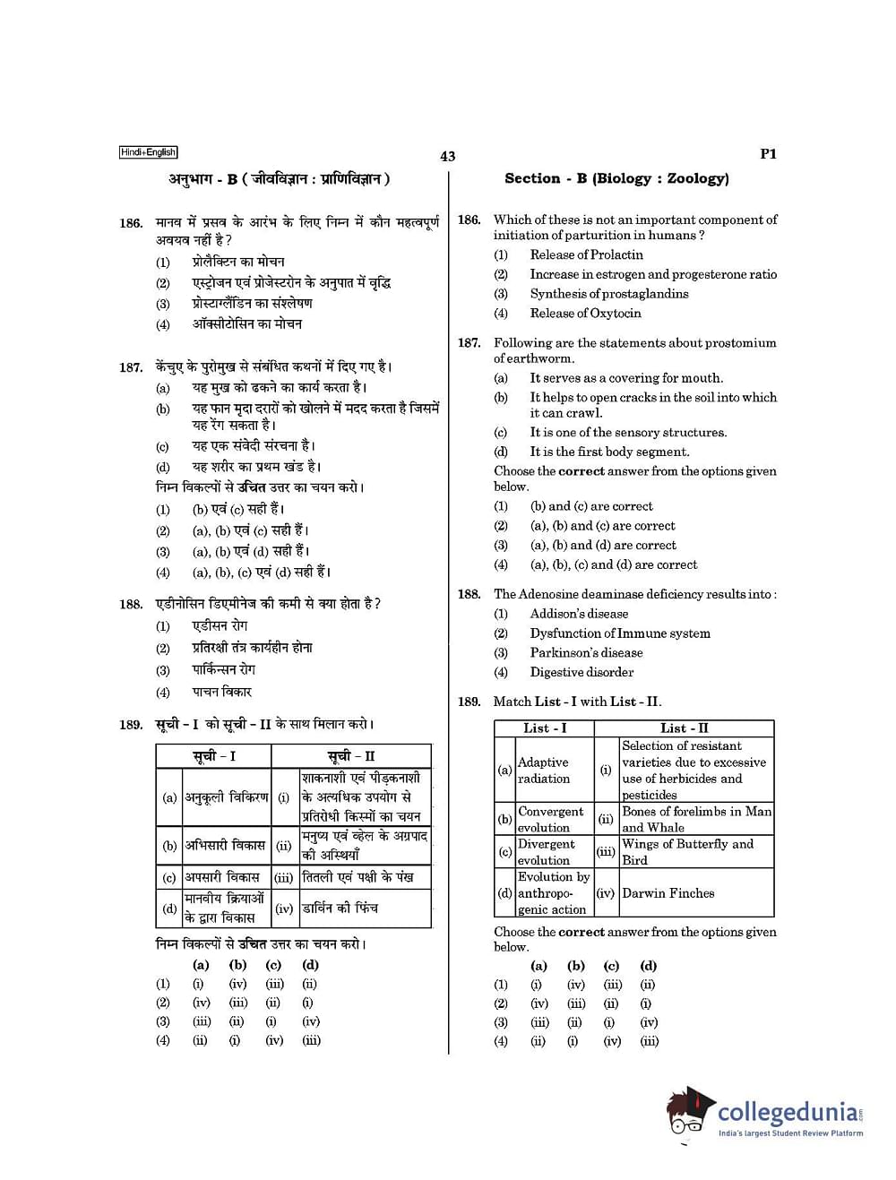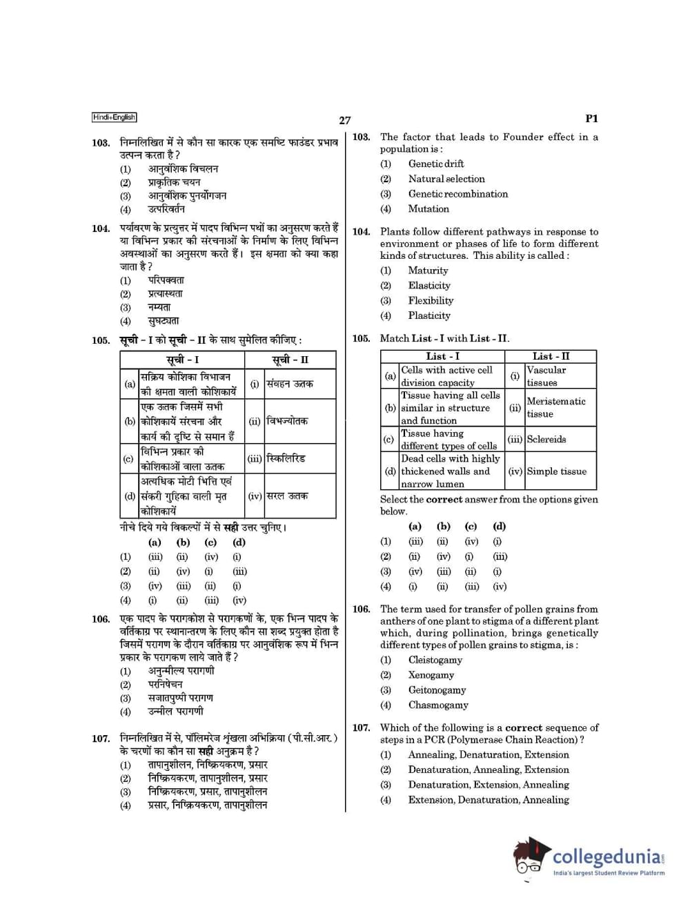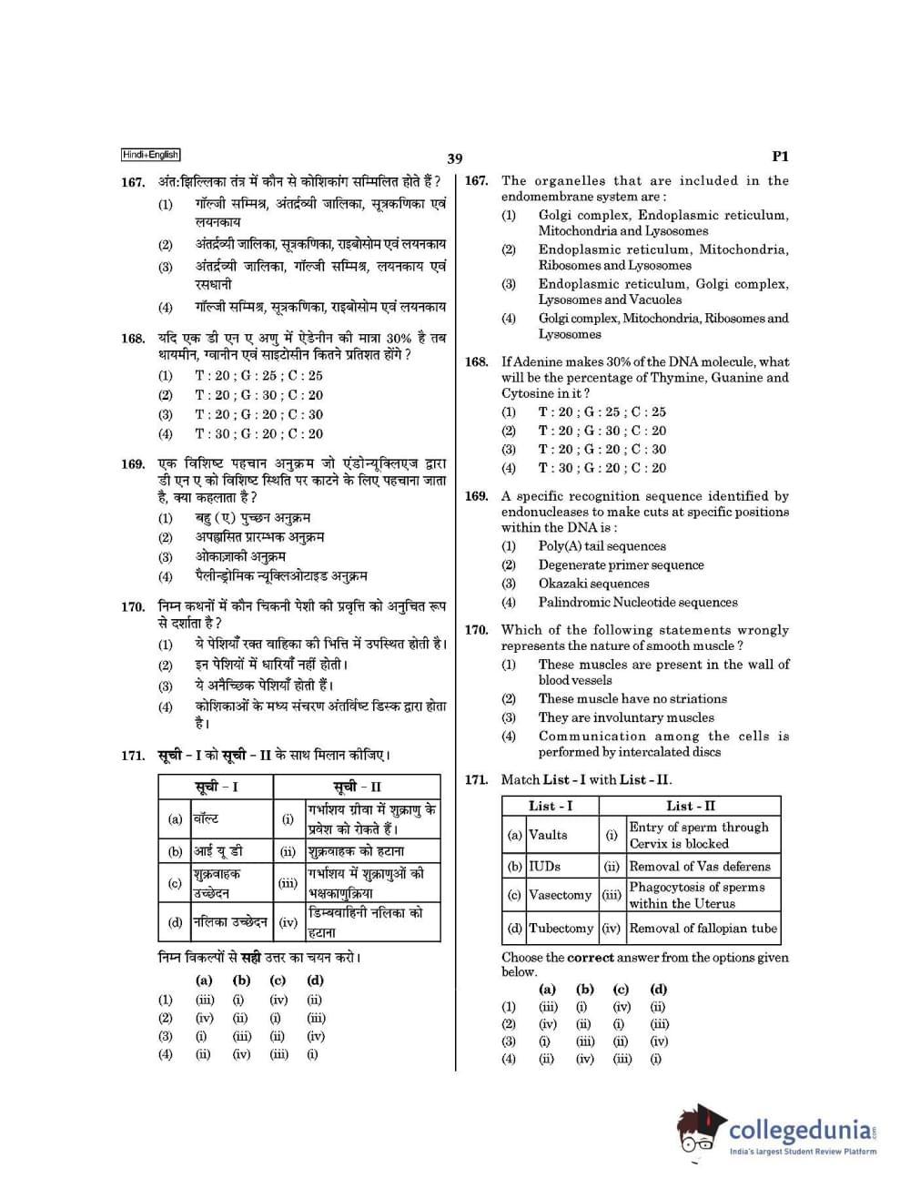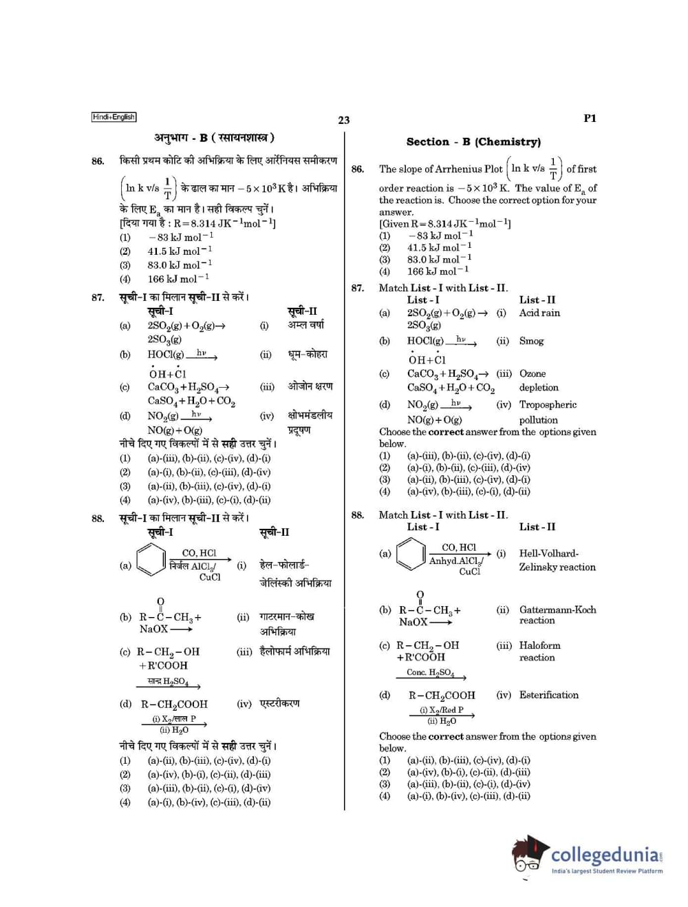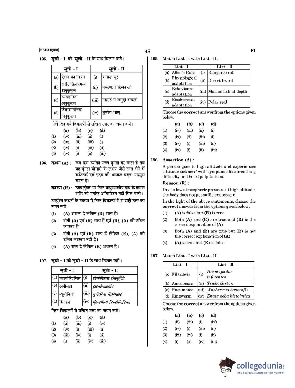 | Number of sections | 3 (Physics, Chemistry and Biology) | 4 (Physics, Chemistry, Botany,Zoology) |