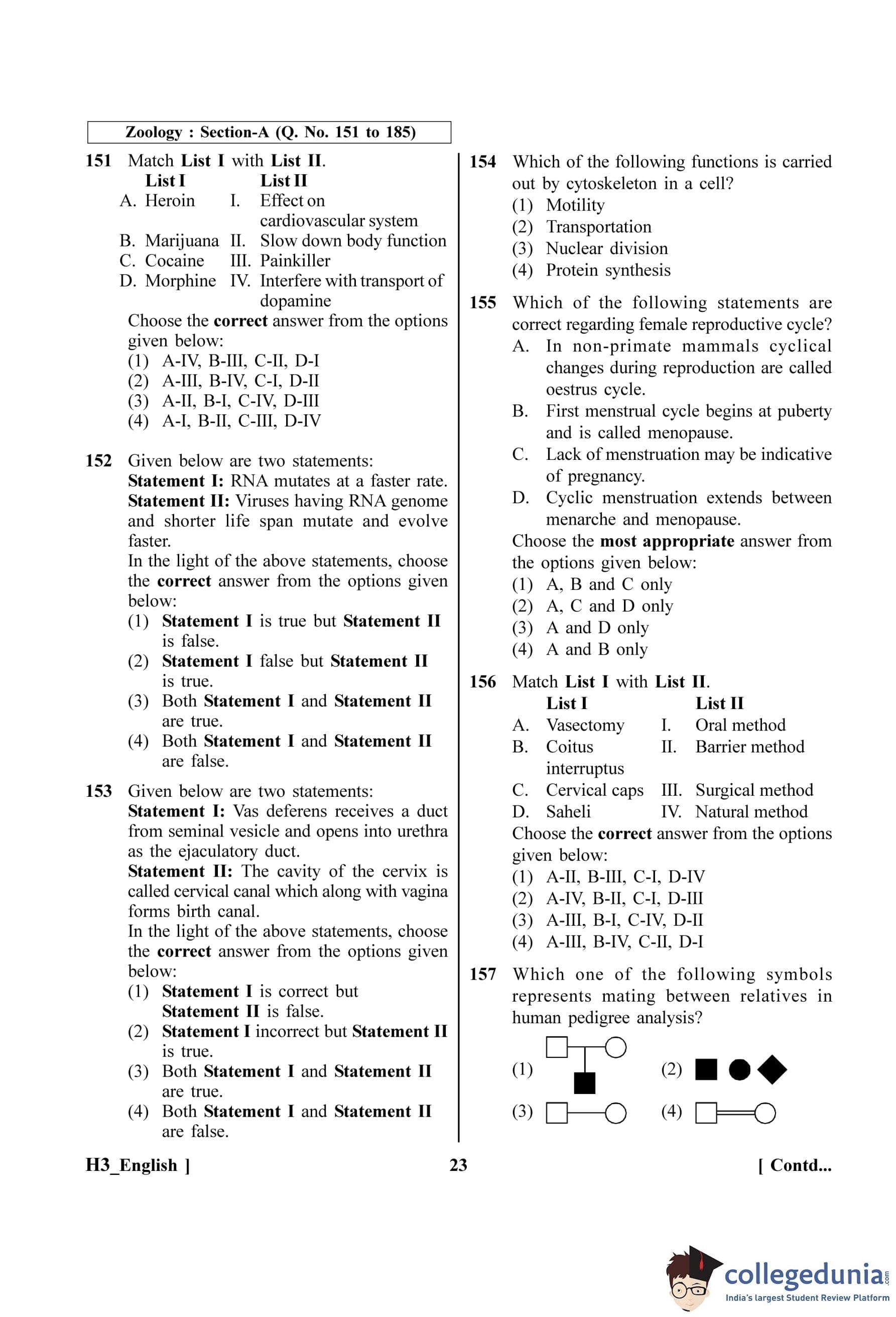 | NEET 2023 Answer Key H3 | NEET 2023 Question Paper H3 |