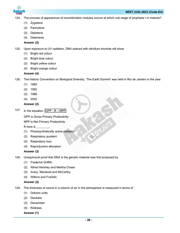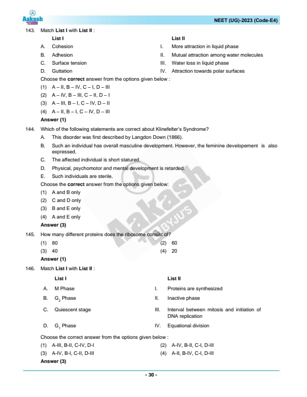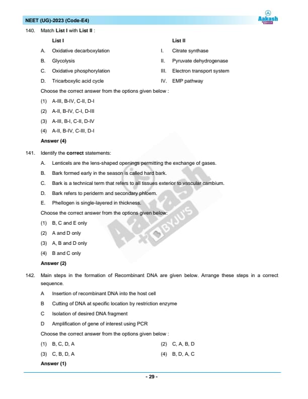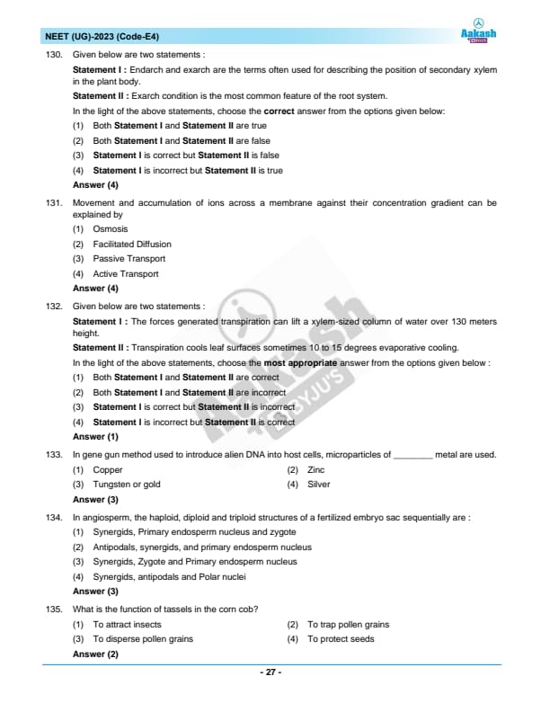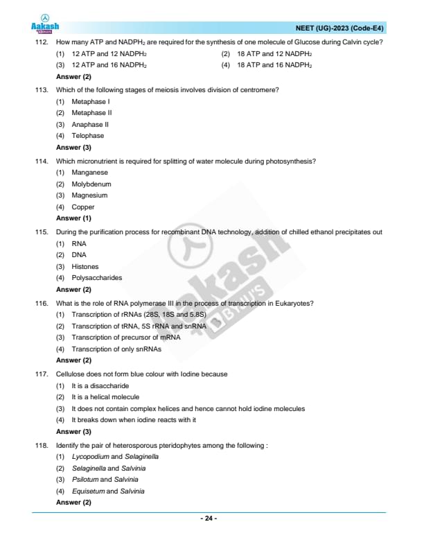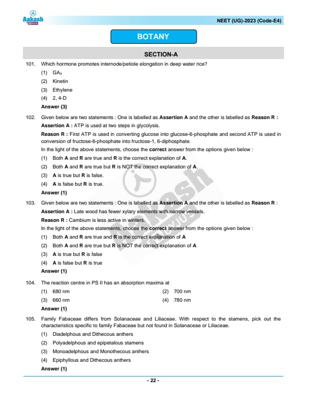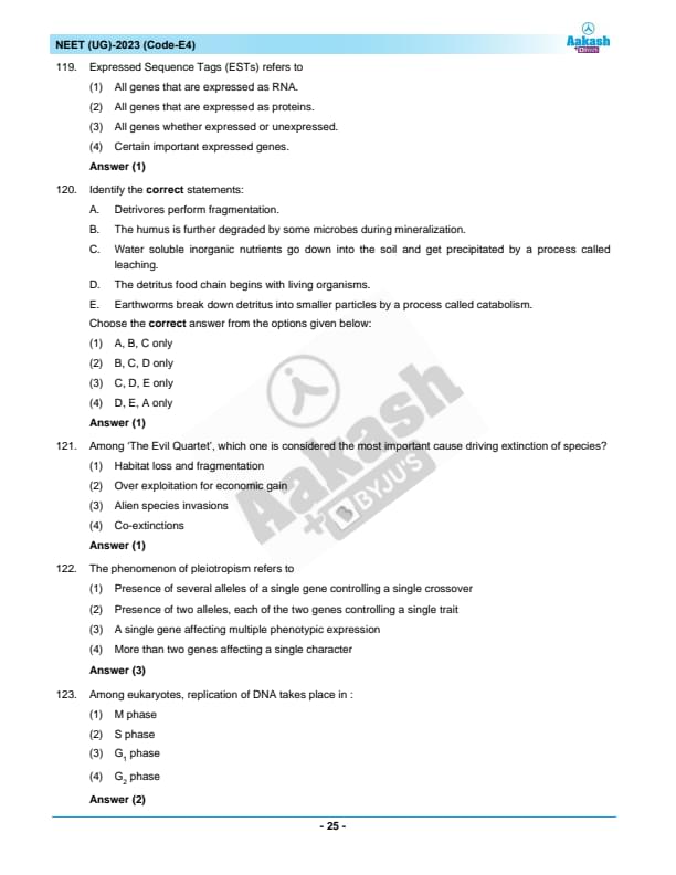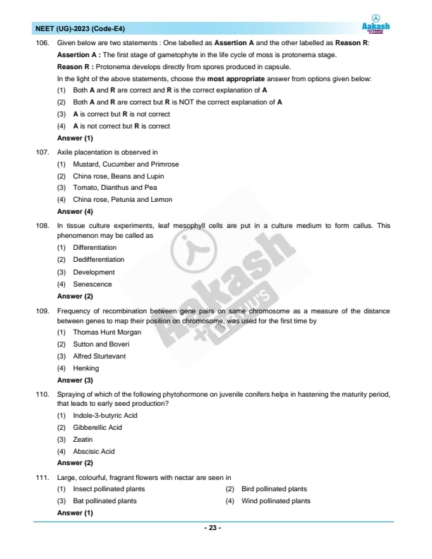 | NEET 2023 Botany E4 Question Paper with Answer Key PDF | Download PDF | Check Solutions |