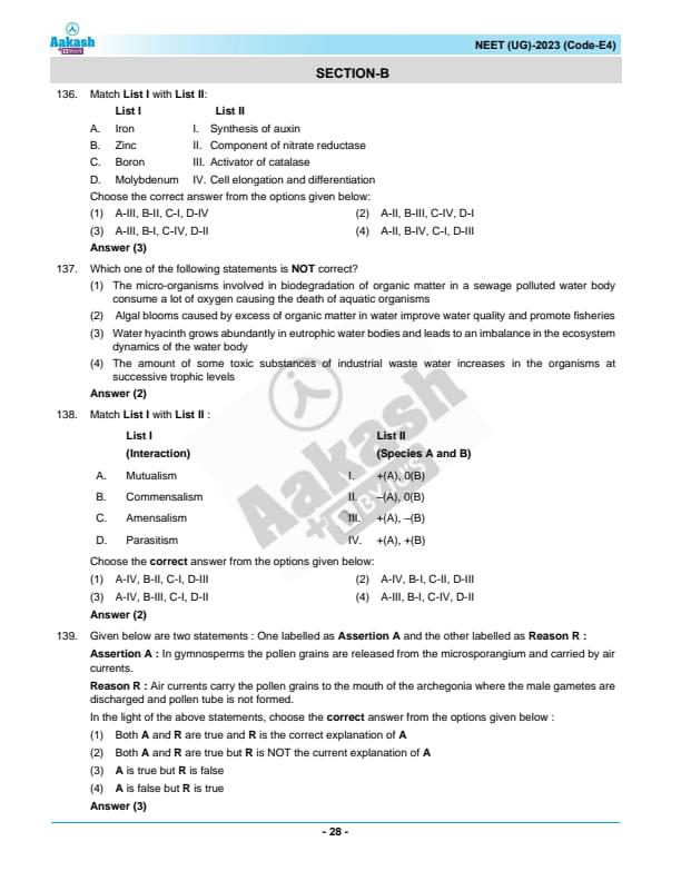 NEET 2023 Botany Question Paper with Solutions PDF E4