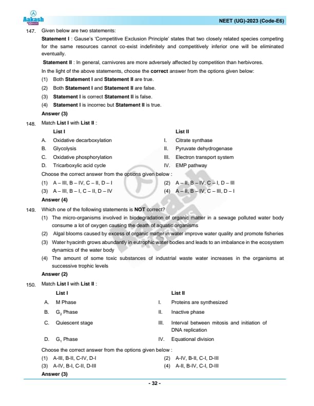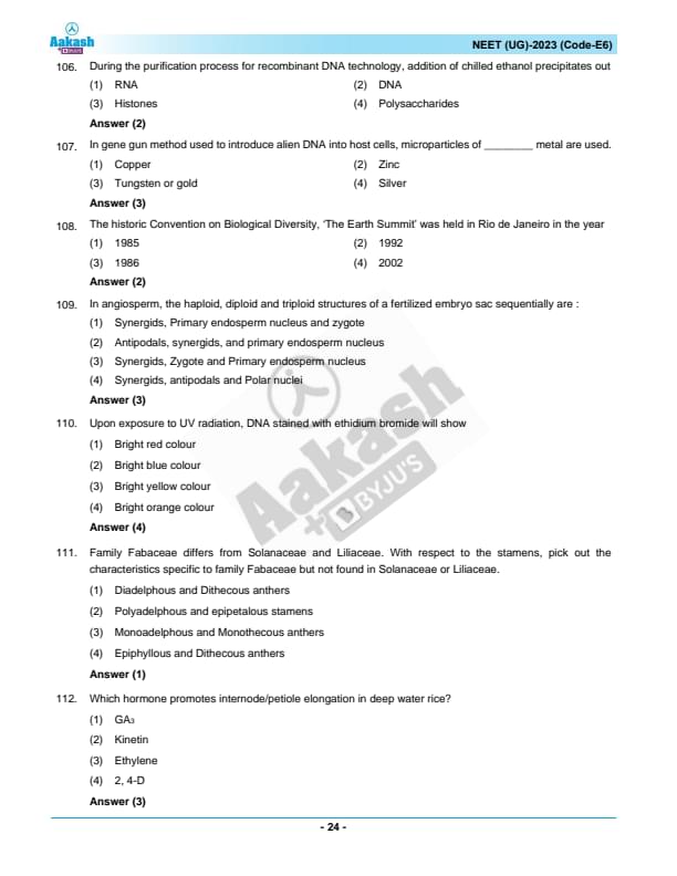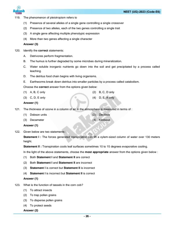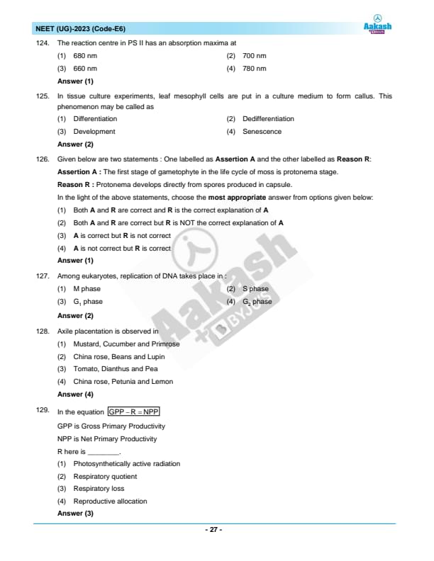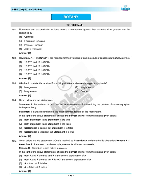 | NEET 2023 Botany E6 Question Paper with Answer Key PDF | Download PDF | Check Solutions |