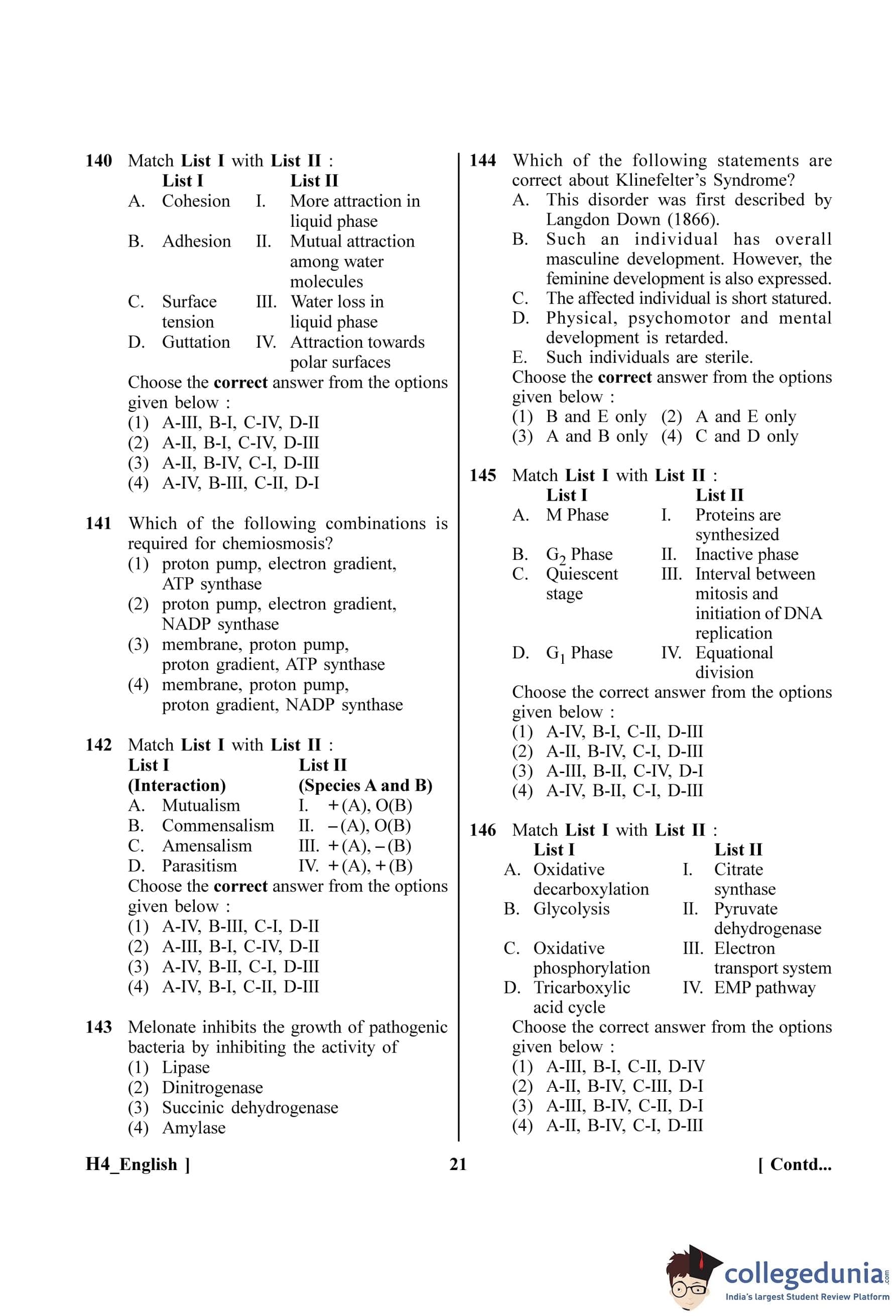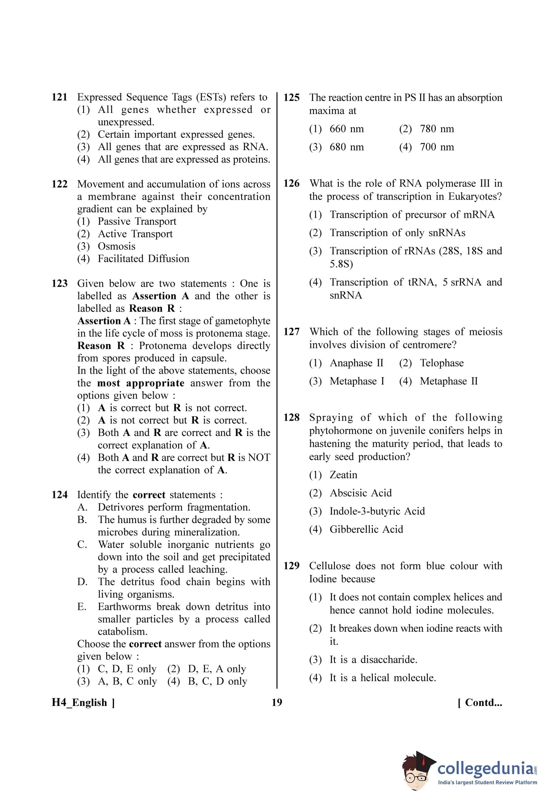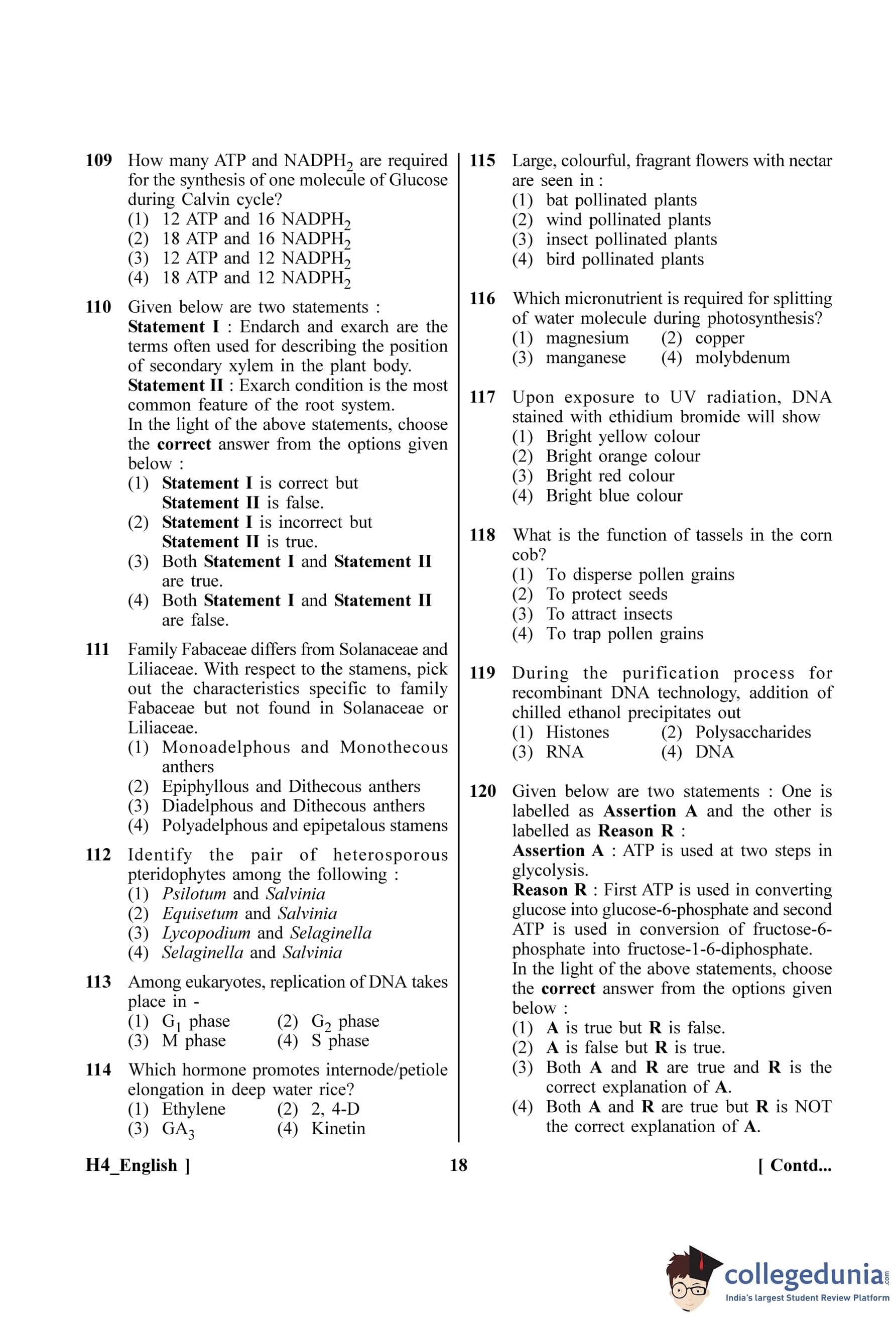 NEET 2023 Botany Question Paper with Solutions PDF H4 is available for download. NEET 2023 H4 Botany Question Paper comprises 50 MCQs out of which only 45 are to be attempted. NEET 2023 question H4 Botany is divided into 2 sections- A (35 questions) and B (15 questions).