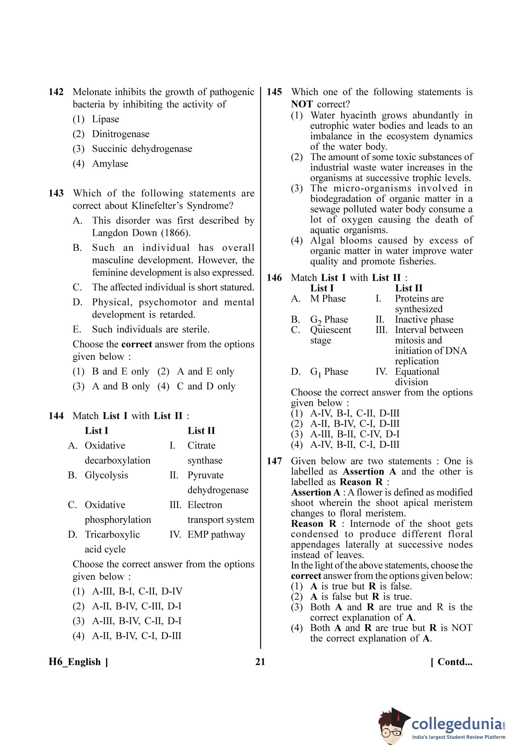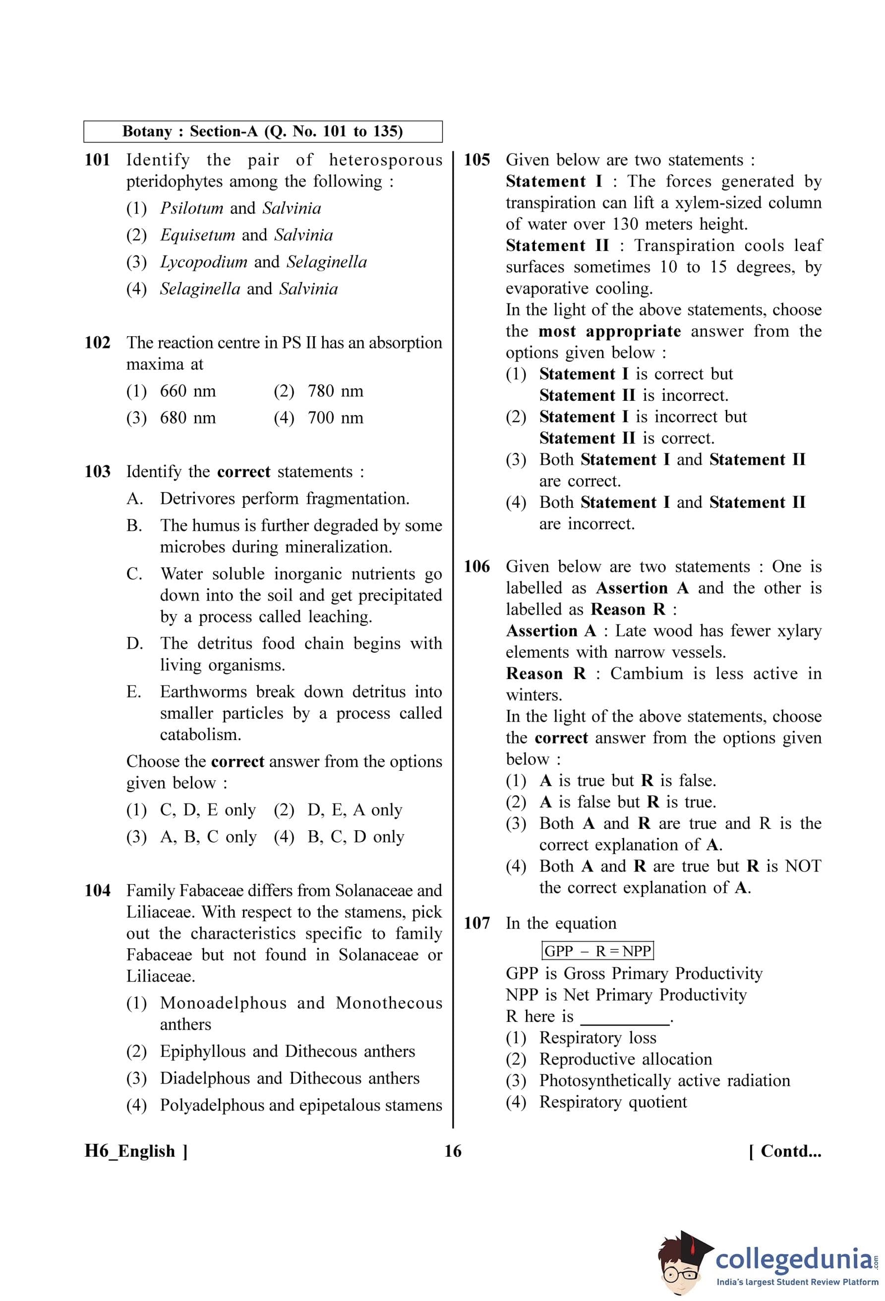 | NEET 2023 Botany H6 Question Paper with Answer Key PDF | Download PDF | Check Solutions |