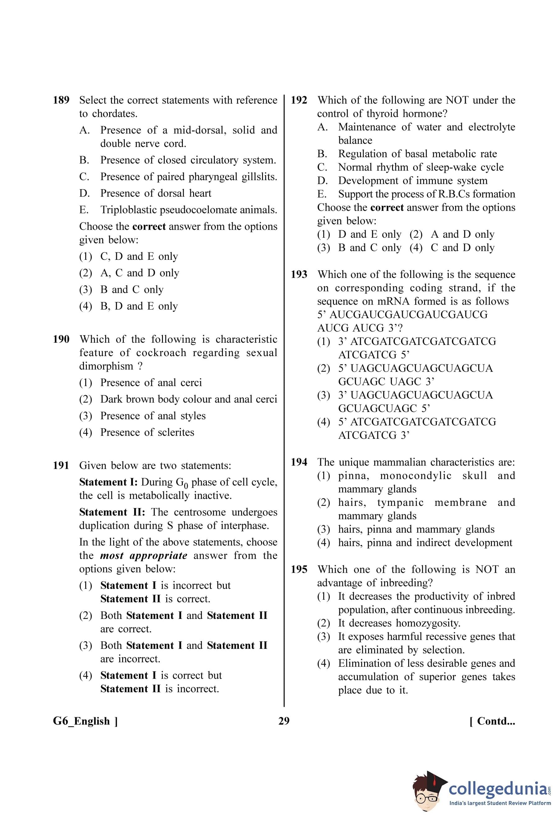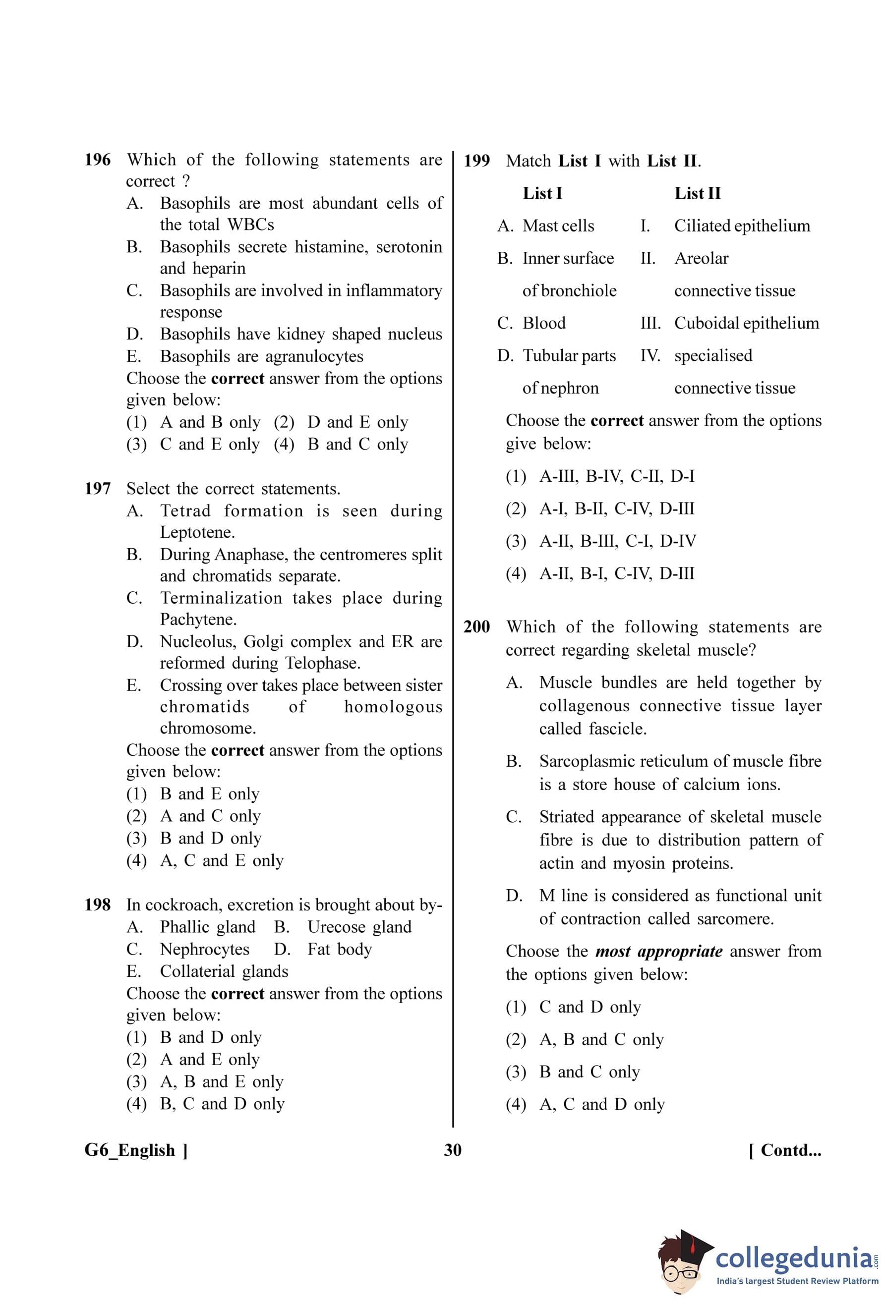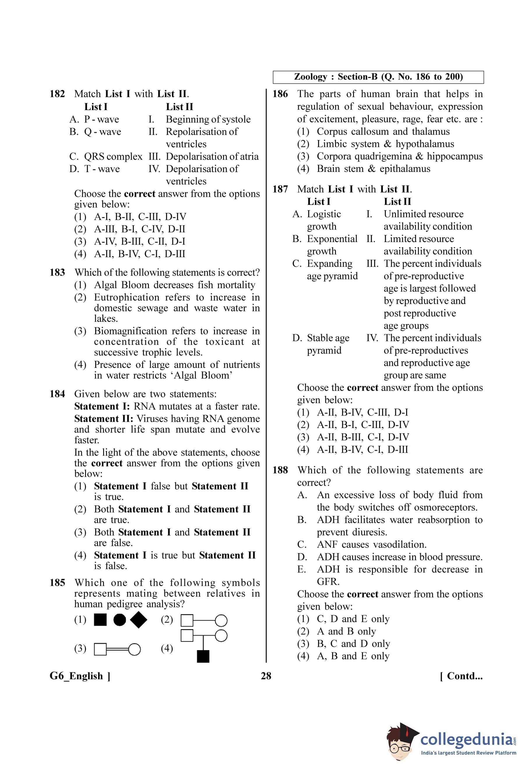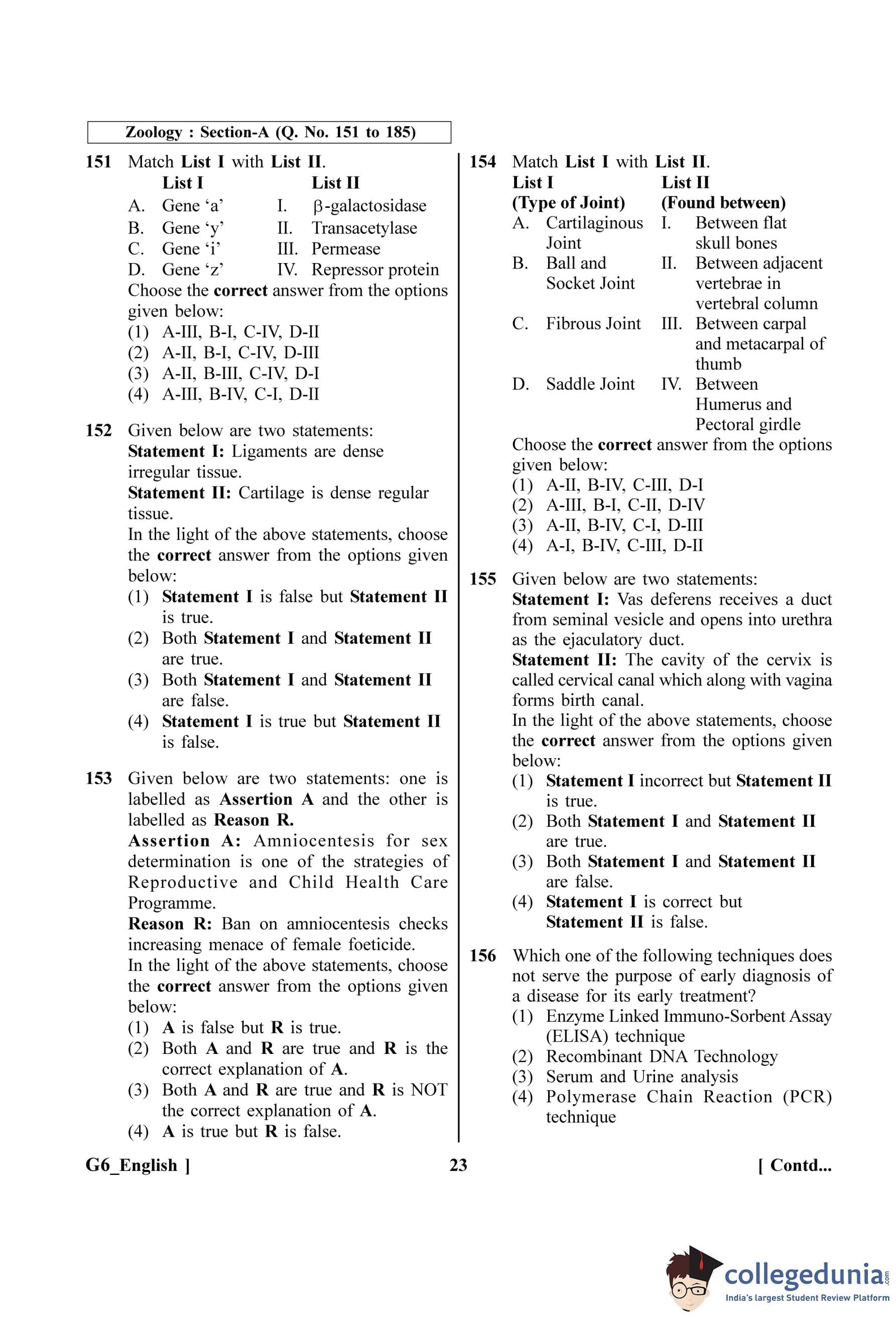NEET 2023 Question paper with answer key pdf G6 is available for download. NEET 2023 G6 question paper has been conducted by the NTA on May 7, 2023, in pen-paper mode. NEET 2023 question paper code G6 consists of 200 MCQs- 180 to be attempted in 200 minutes. Each of the 4 subjects (Zoology, Botany, Chemistry, Physics) in NEET G6 question paper 2023 have 50 MCQs (45 to be attempted).