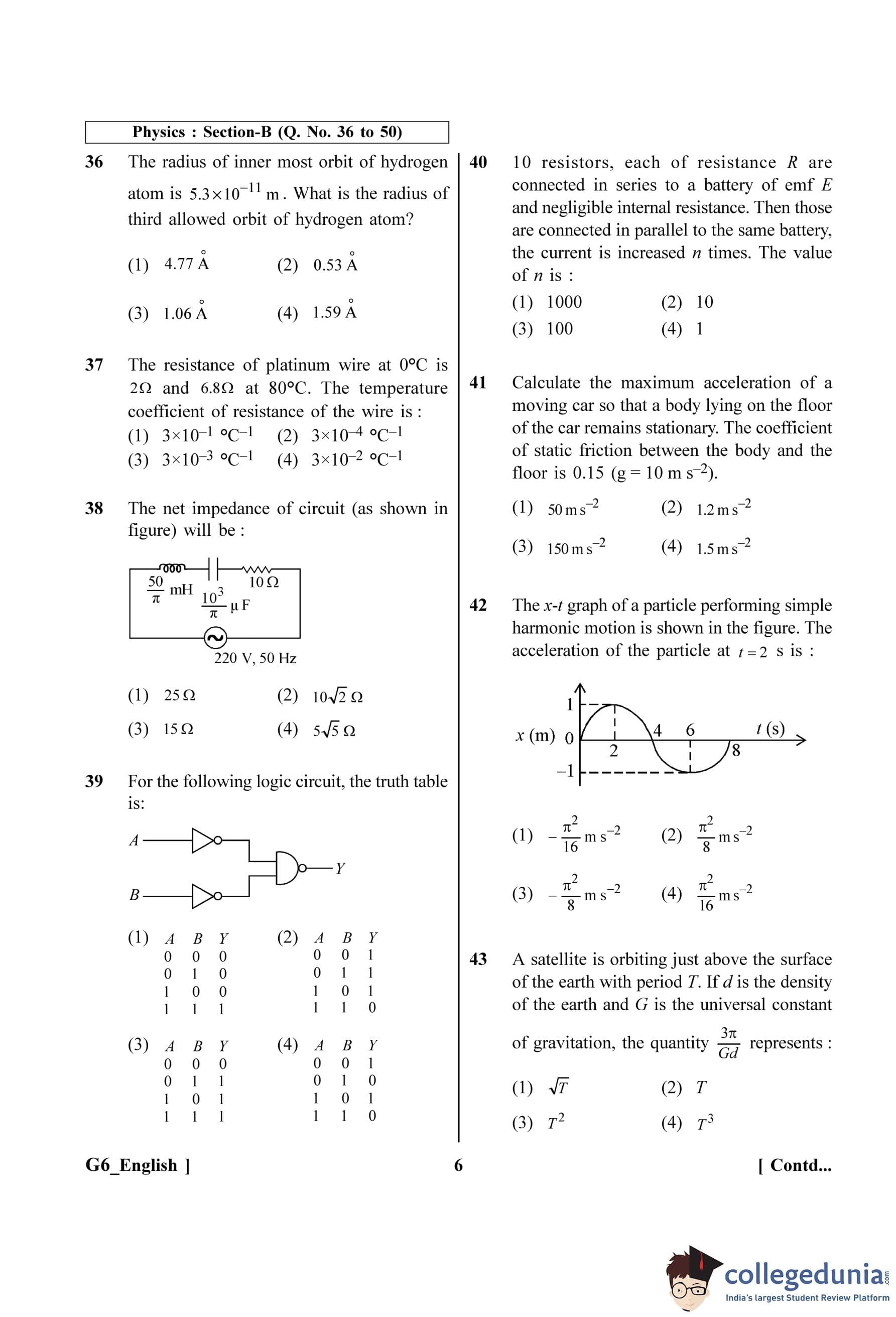 | NEET 2023 G6 Question Paper with Answer Key PDF | Download PDF | Check Solutions |