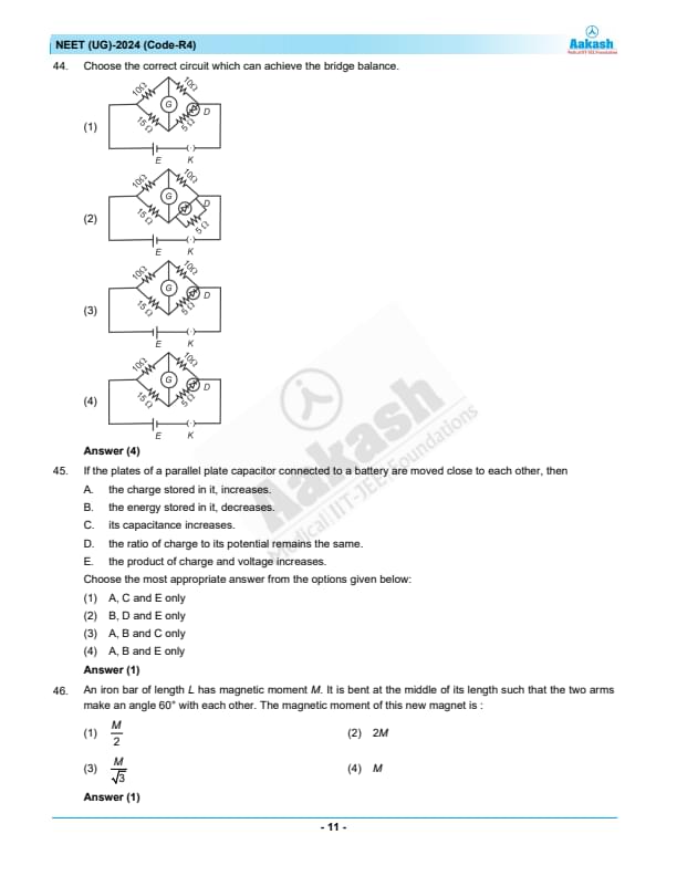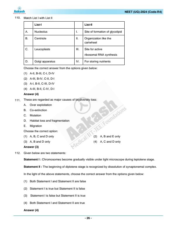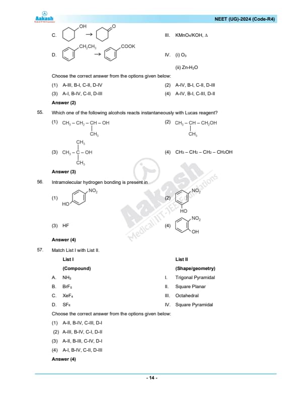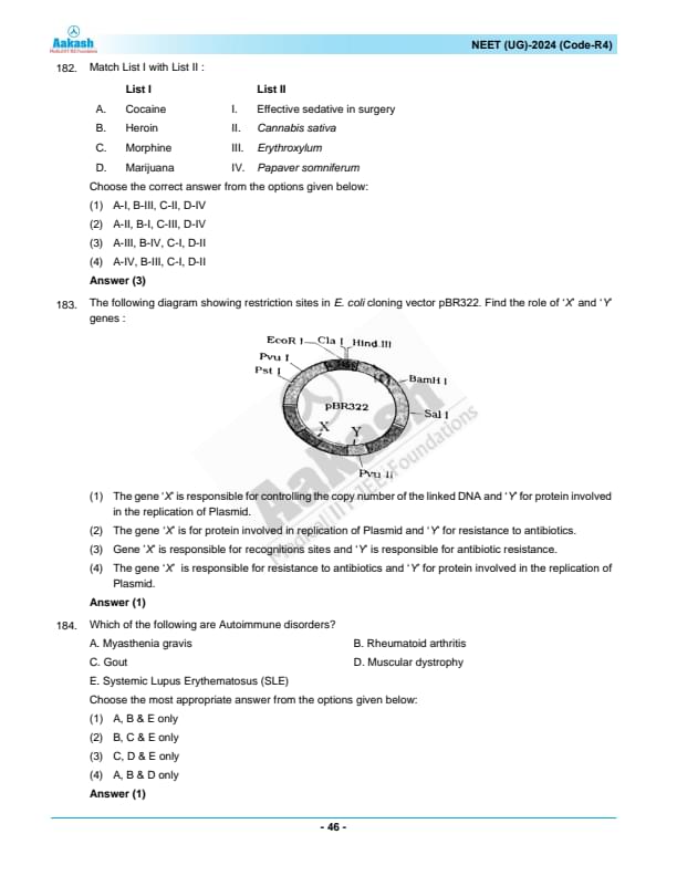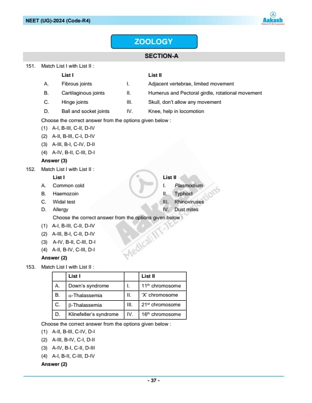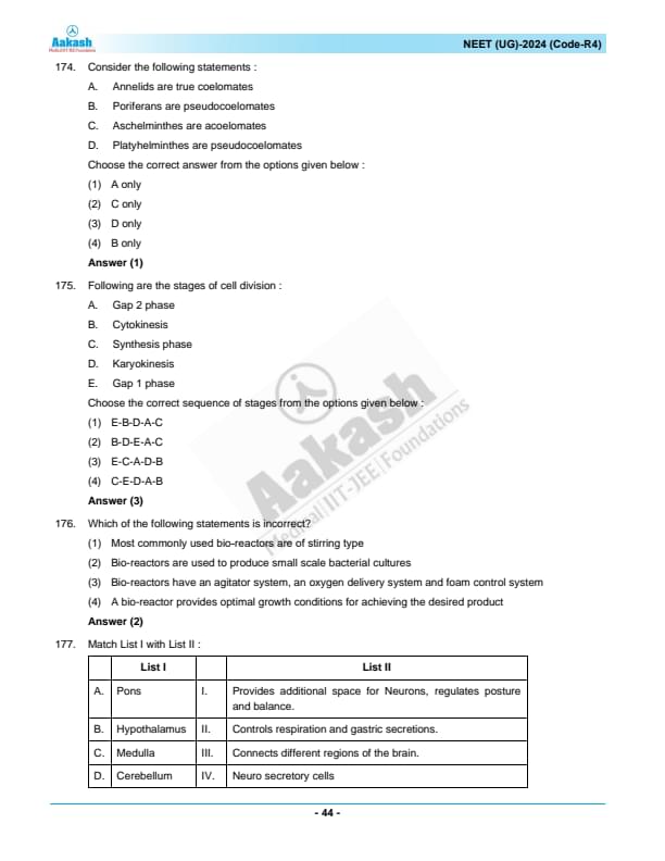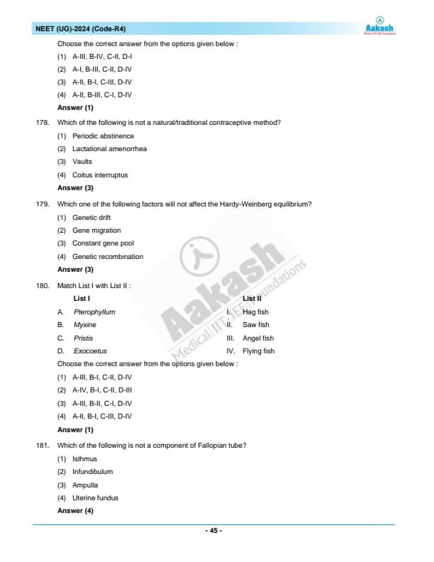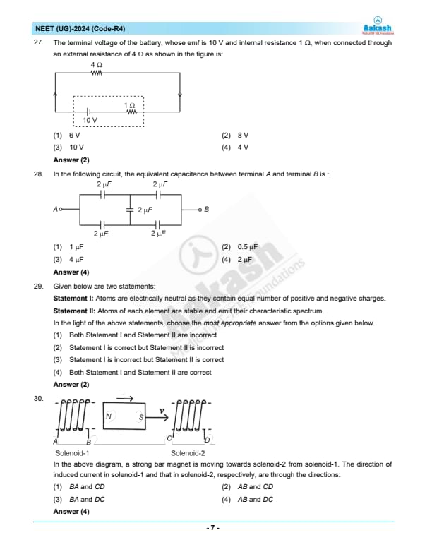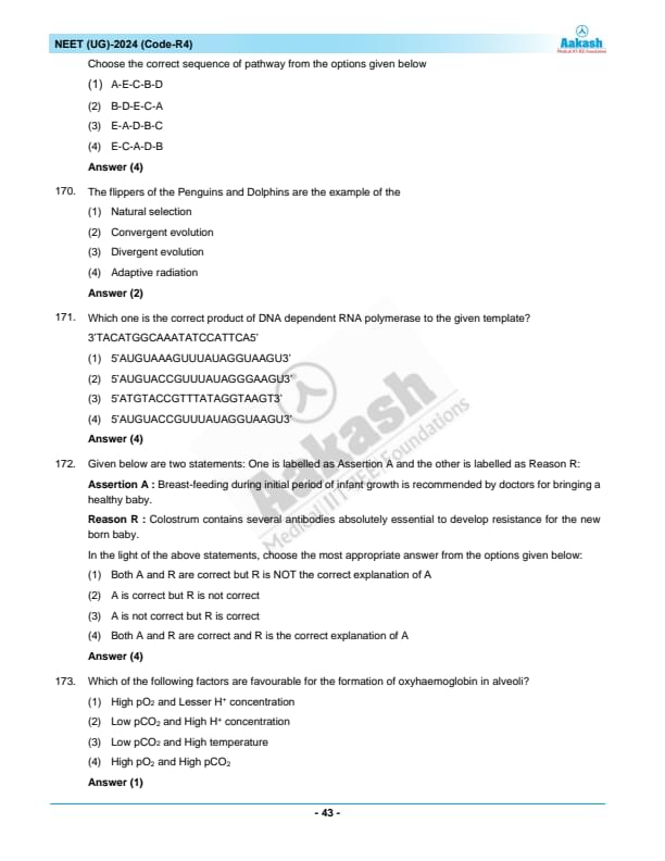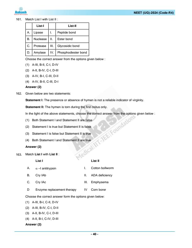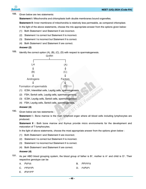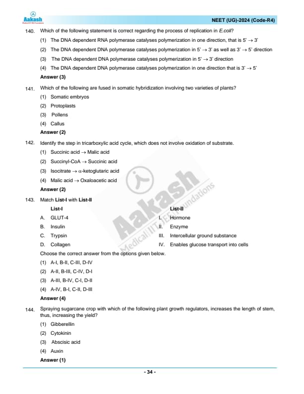 NEET 2024 Question paper with answer key pdf R4 is available for download. NEET 2024 R4 question paper has been conducted by the NTA on May 5, 2024, in pen-paper mode. NEET 2024 question paper code R4 consists of 200 MCQs- 180 to be attempted in 200 minutes. Each of the 4 subjects (Zoology, Botany, Chemistry, Physics) in NEET R4 question paper 2023 have 50 MCQs (45 to be attempted). You can download NEET 2024 question paper with answer key with solutions PDF for R4 using the links given below. [PDF Source: aakash.ac.in]