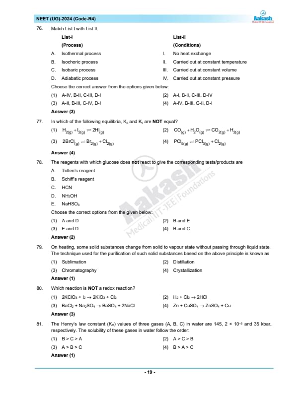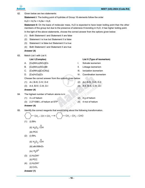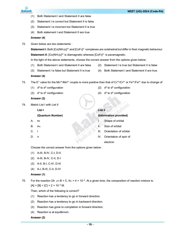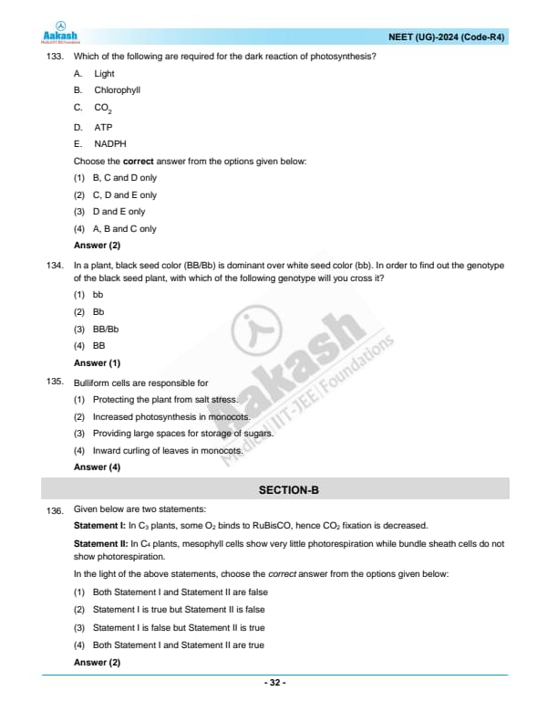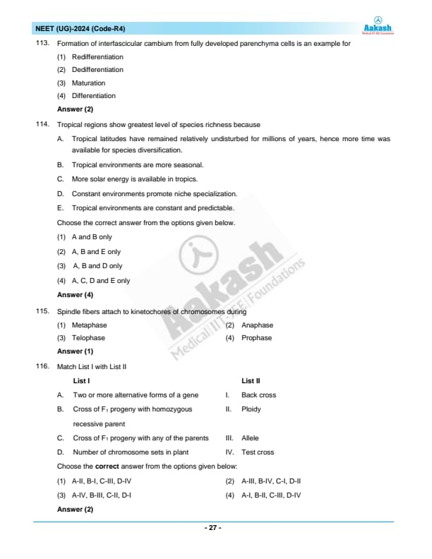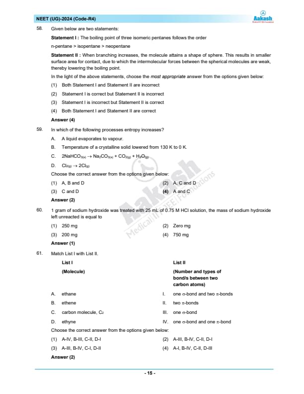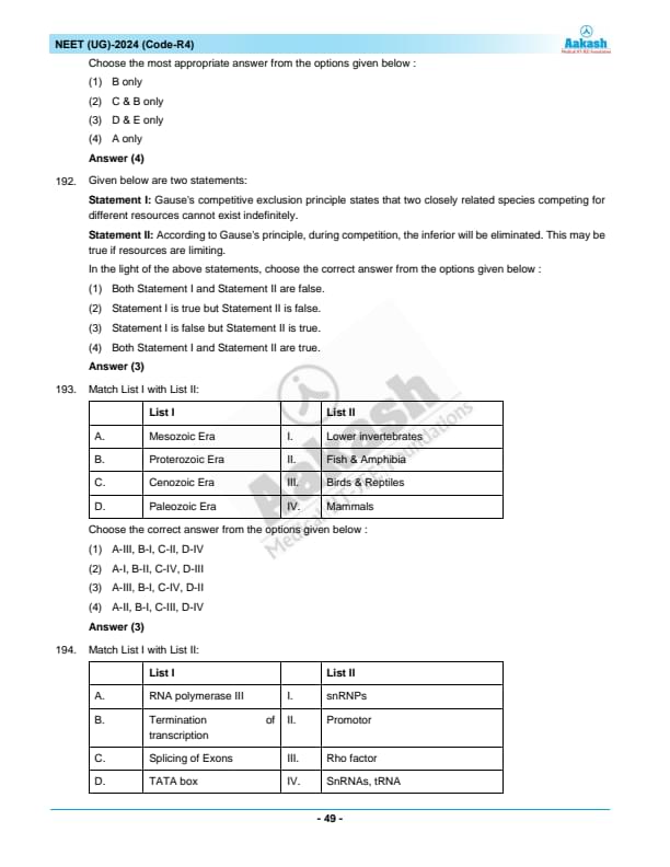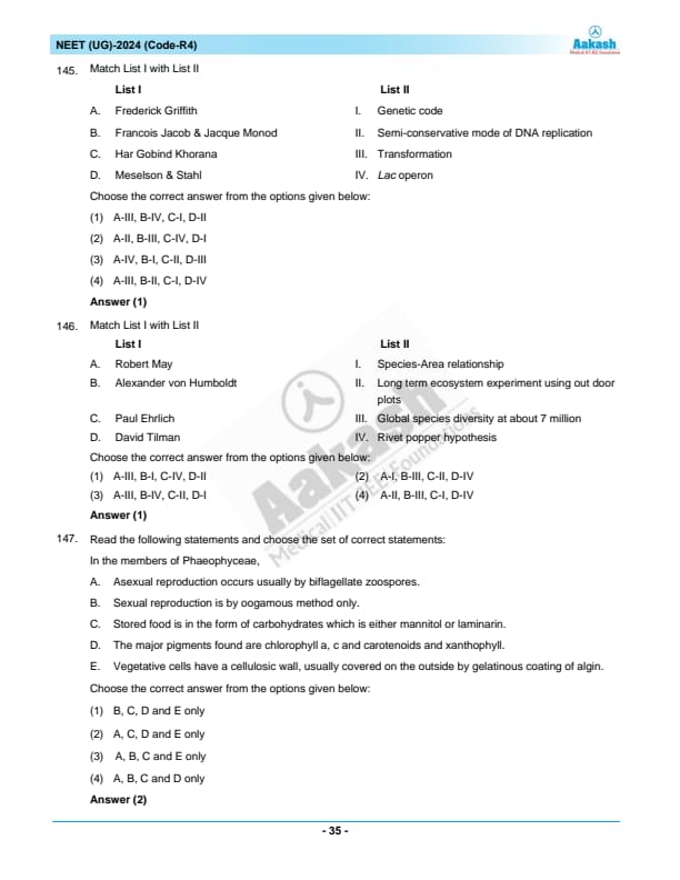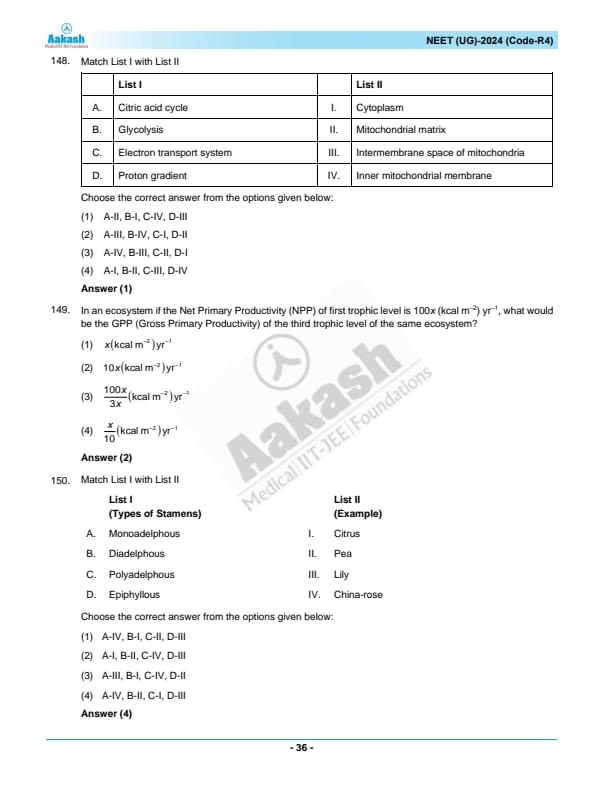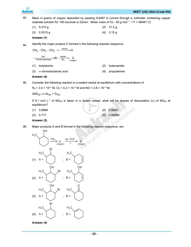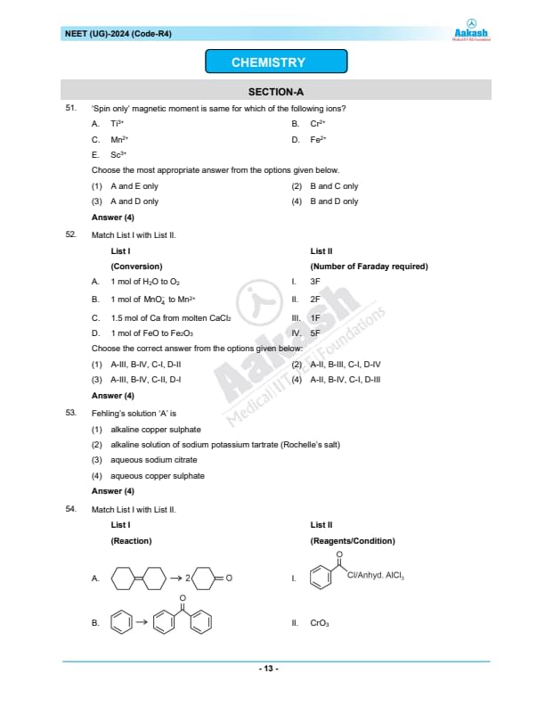 NEET 2024 Question paper with answer key pdf R4 is available for download. NEET 2024 R4 question paper has been conducted by the NTA on May 5, 2024, in pen-paper mode. NEET 2024 question paper code R4 consists of 200 MCQs- 180 to be attempted in 200 minutes. Each of the 4 subjects (Zoology, Botany, Chemistry, Physics) in NEET R4 question paper 2023 have 50 MCQs (45 to be attempted). You can download NEET 2024 question paper with answer key with solutions PDF for R4 using the links given below. [PDF Source: aakash.ac.in]