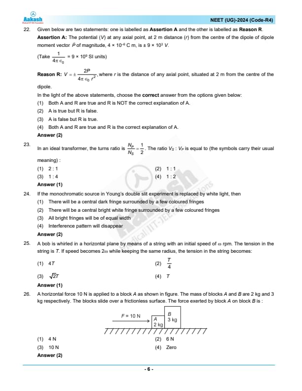 | NEET 2024 Question Paper R4 | NEET 2024 Answer Key R4 |