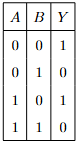 A logic circuit provides the output \( Y \) as per the following truth table: