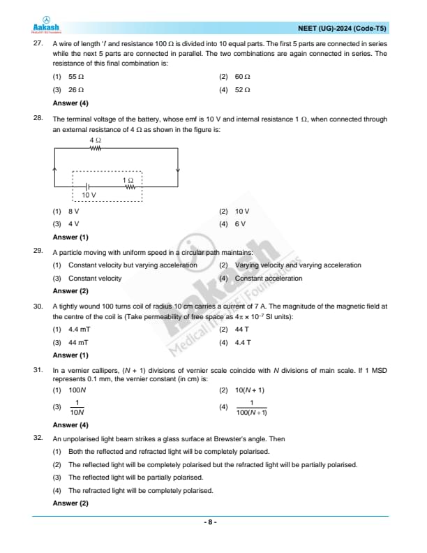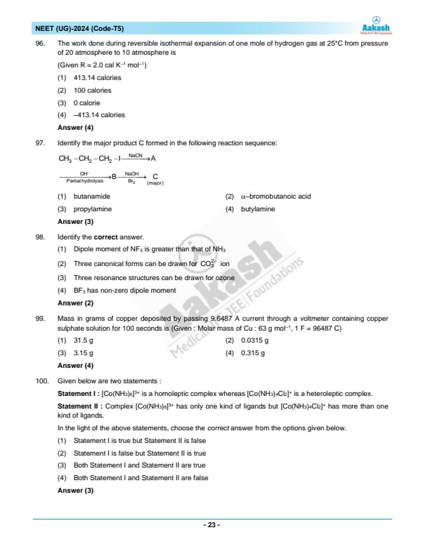 - Download NEET Previous Year Question Papers PDF with Solutions