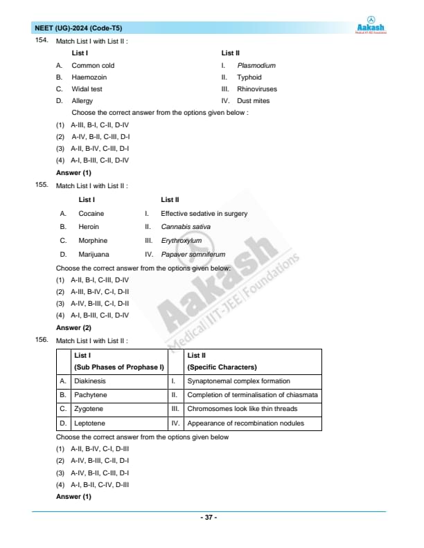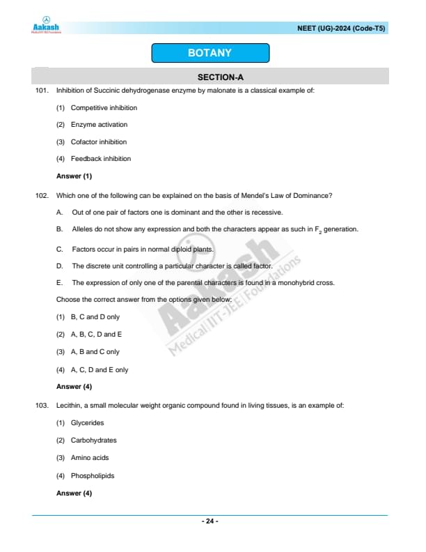 NEET 2024 Question Paper with Answer Key PDF T5 in English