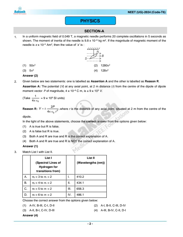 - Download NEET Previous Year Question Papers PDF with Solutions