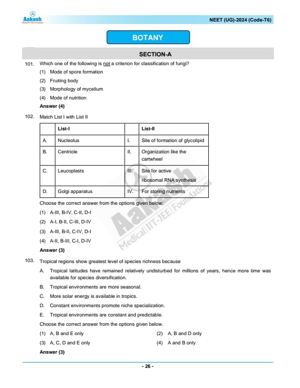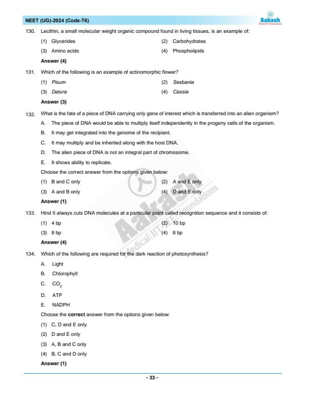 NEET 2024 Question Paper with Answer Key PDF T6 in English