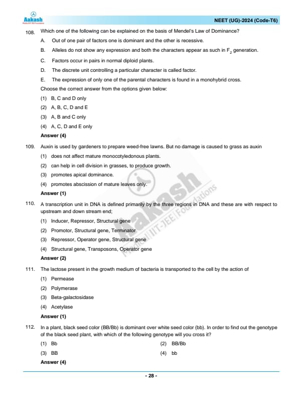 NEET 2024 Question paper with answer key pdf T6 is available for download. NEET 2024 T6 question paper has been conducted by the NTA on May 5, 2024, in pen-paper mode. NEET 2024 question paper code T6 consists of 200 MCQs- 180 to be attempted in 200 minutes. Each of the 4 subjects (Zoology, Botany, Chemistry, Physics) in NEET T6 question paper 2023 have 50 MCQs (45 to be attempted). You can download NEET 2024 question paper with answer key with solutions PDF for T6 using the links given below.