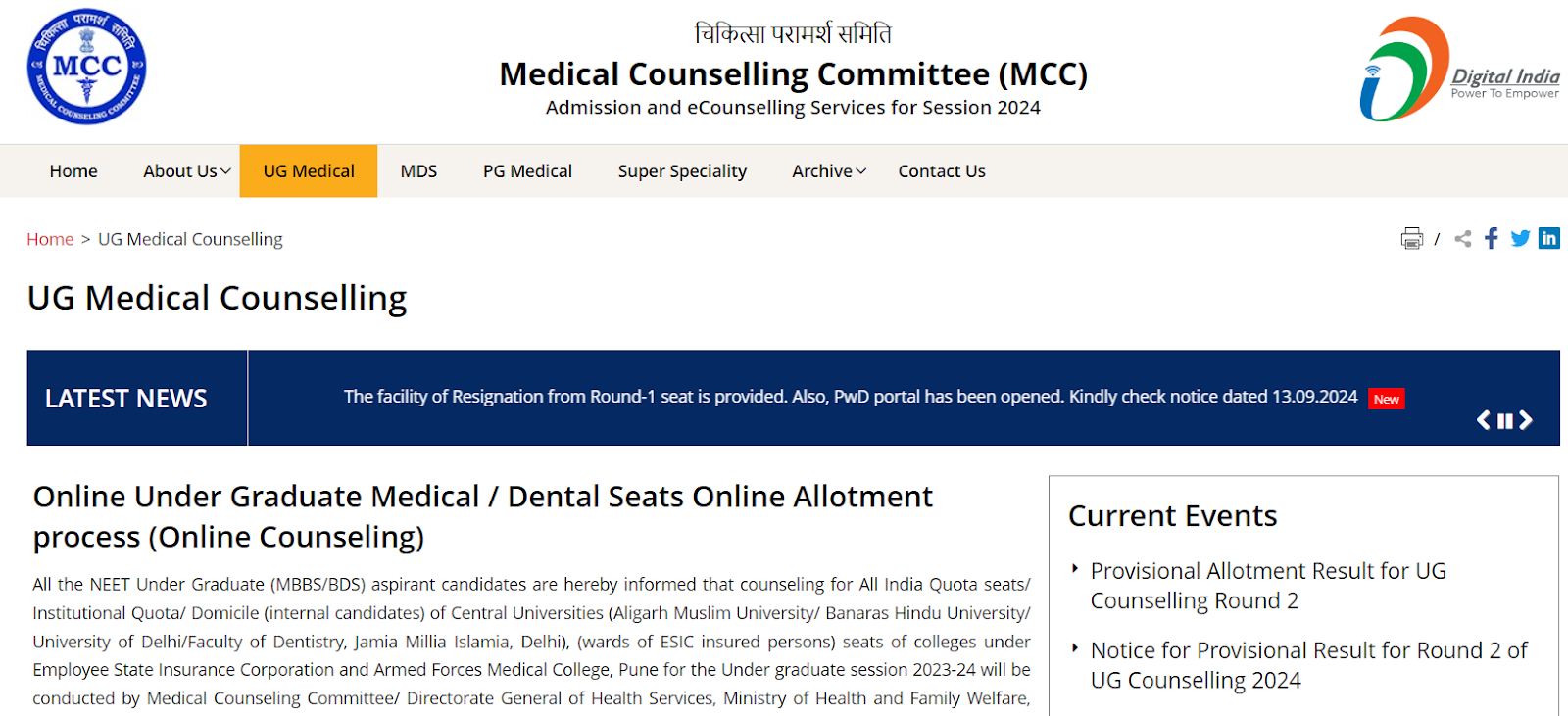 - Next, you have to locate the NEET UG counseling link on the homepage and click on it to go to the next page.