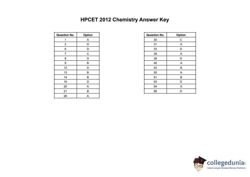 | HPCET 2012 Chemistry Question Paper PDF | HPCET 2012 Chemistry Answer Key PDF |