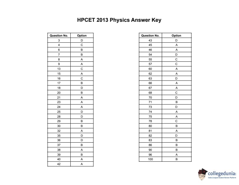 | HPCET 2013 Physics Question Paper PDF | HPCET 2013 Physics Answer Key PDF |