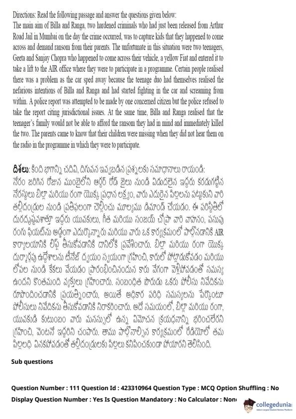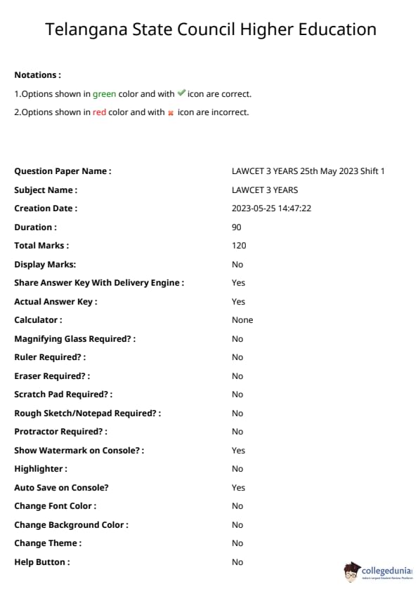 | TS LAWCET 2023 5 Years LLB Question Paper with Answer Key | Check Solutions |