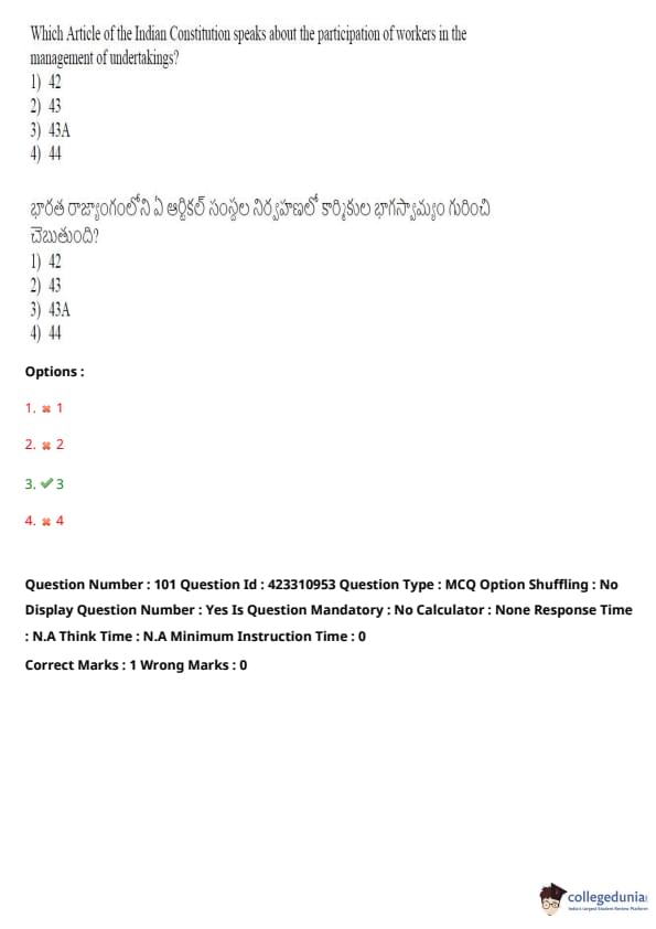 Quick Tip: Keep in mind that Article 43A focuses on the economic democracy of workers in industrial enterprises, and this can be contrasted with other provisions aimed at labor welfare.