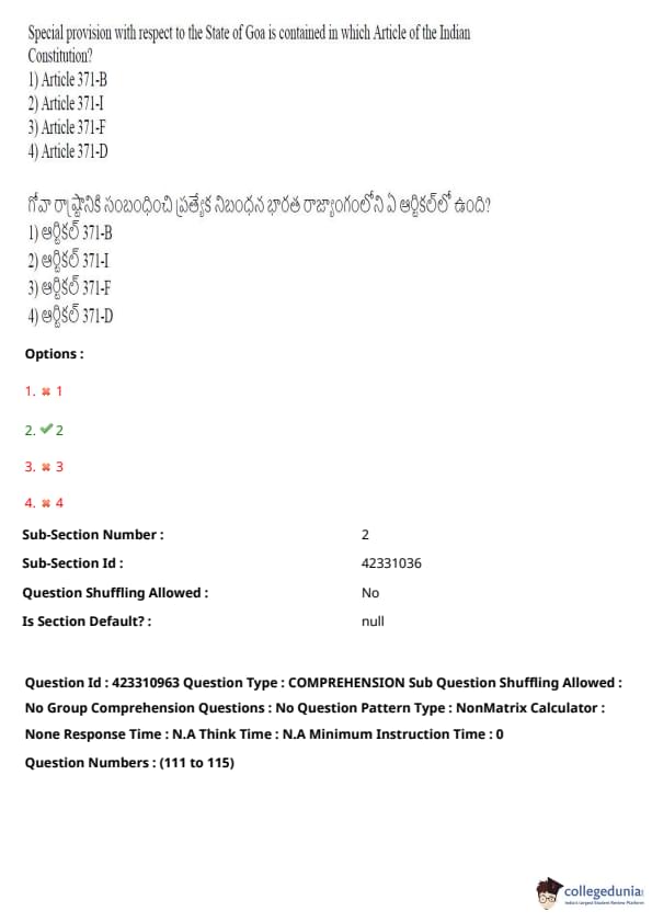 Quick Tip: When studying provisions for specific states, remember that Articles 371 to 371-J provide special provisions for certain regions, including Goa.