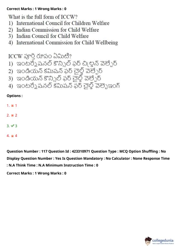 The full form of ICCW is the **Indian Council for Child Welfare**. This is a national non-governmental organization that works for the welfare of children, with a special focus on child development, child rights, and support for children in need. The organization has been instrumental in promoting children’s rights and welfare in India.
