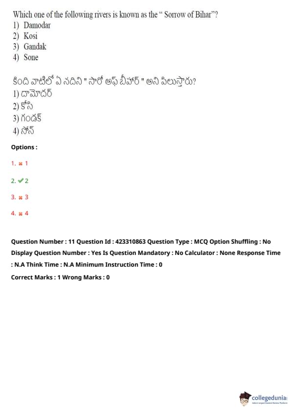 Which one of the following rivers is known as the "Sorrow of Bihar"?