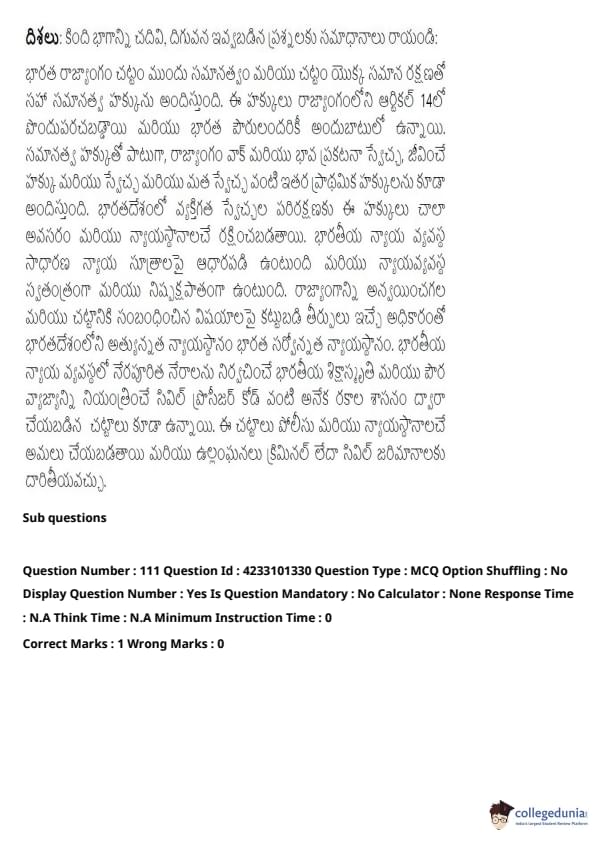 | TS LAWCET 2023 5 Years LLB Question Paper with Answer Key | Check Solutions |