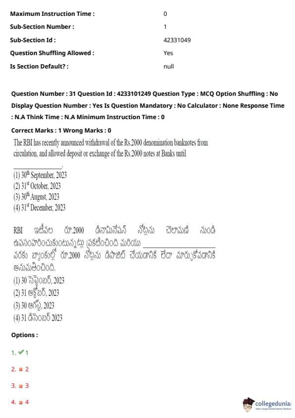 The RBI announced the withdrawal of the Rs. 2000 denomination notes from circulation and allowed their deposit or exchange until 30th September, 2023.