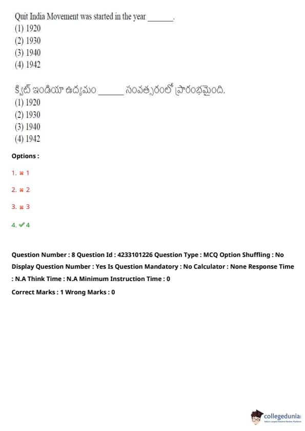 Quick Tip: When studying major Indian movements, focus on their key dates and the leaders associated with them, such as the Quit India Movement in 1942.