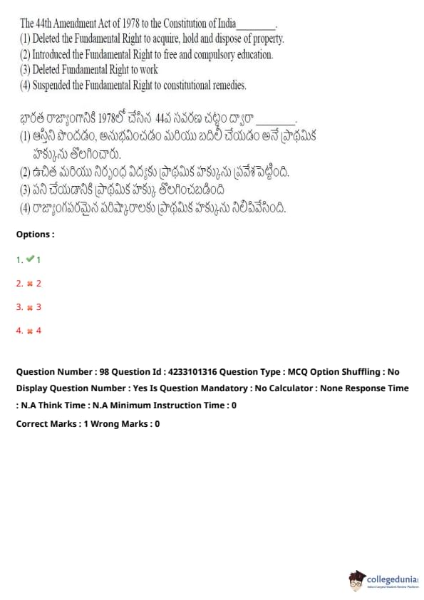 The 44th Amendment Act of 1978 to the Constitution of India _______