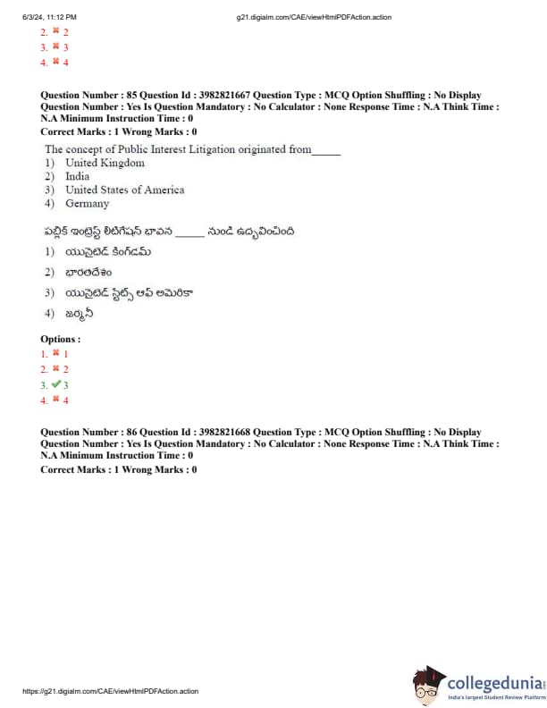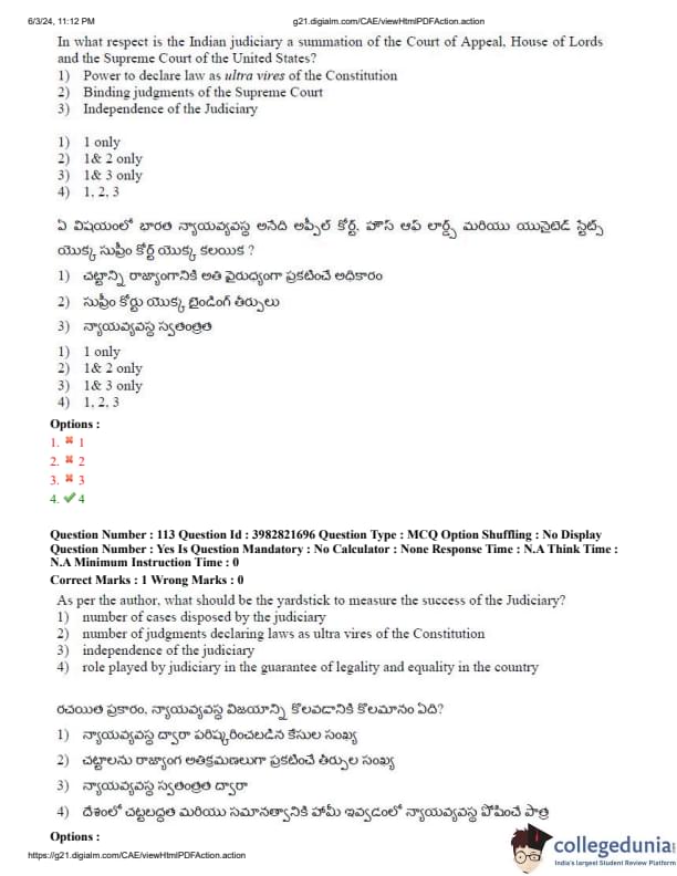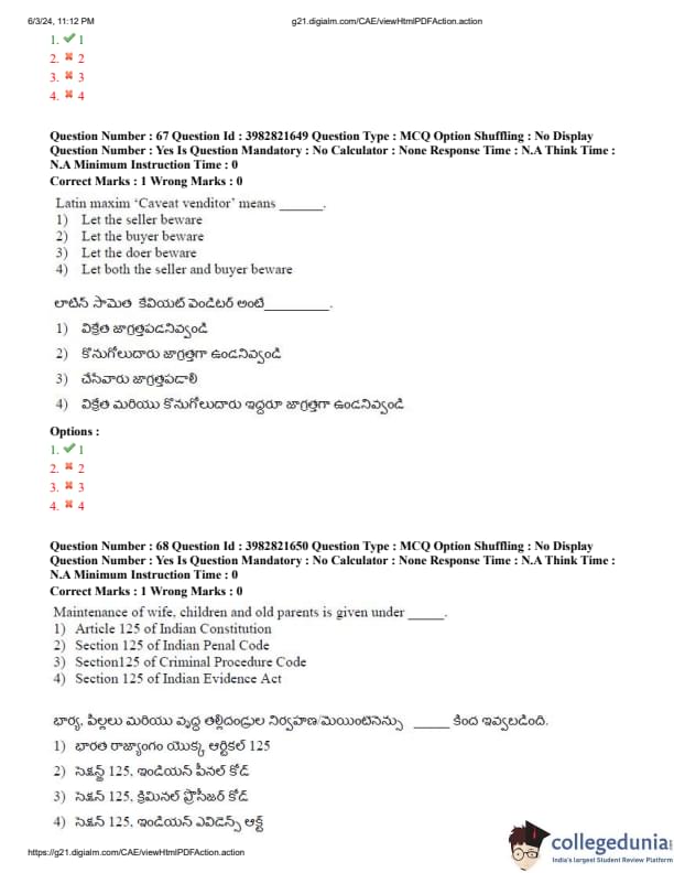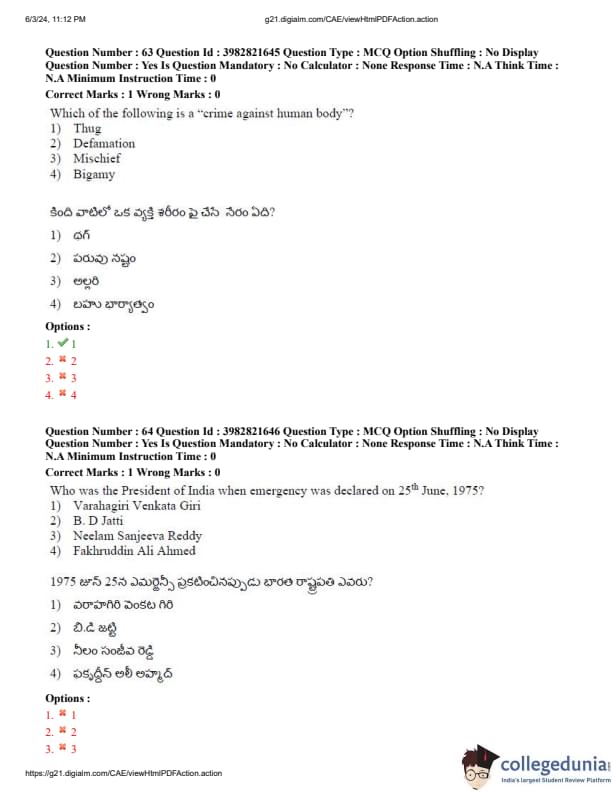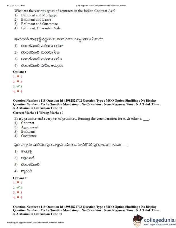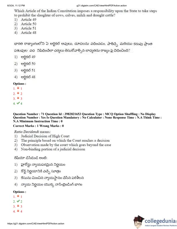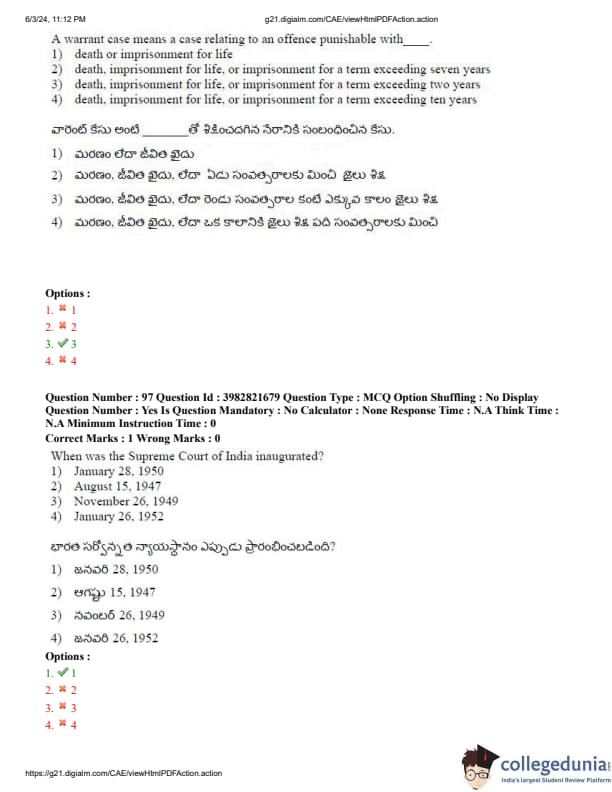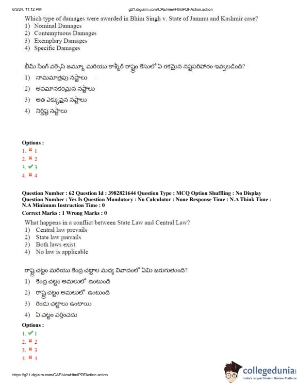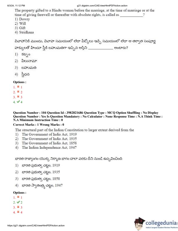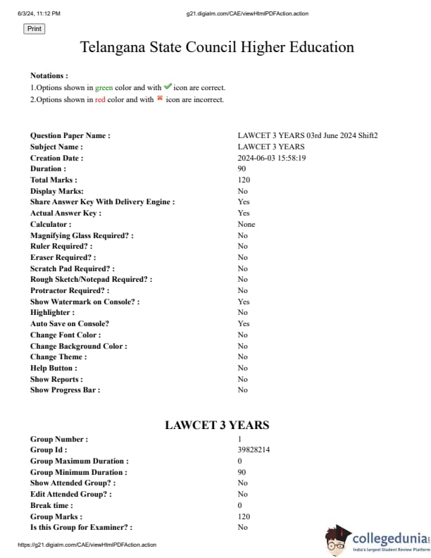 TS LAWCET 2024 3 Years LLB Question Paper with Answer Key (Shift 2)