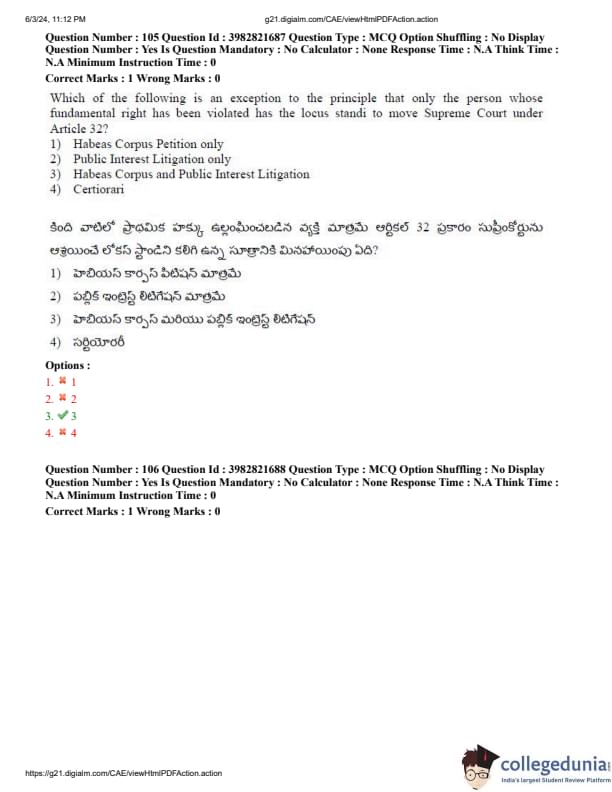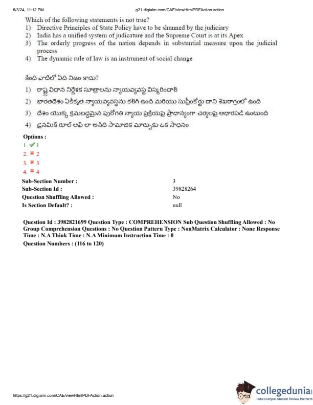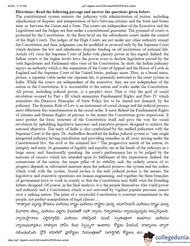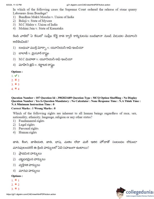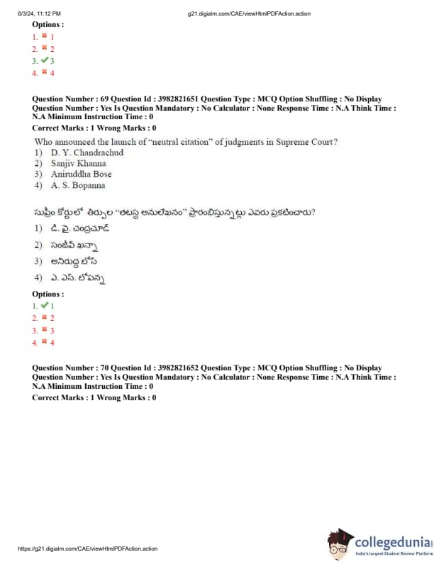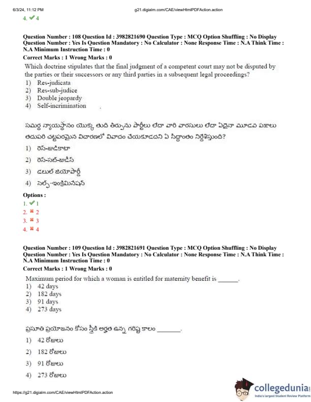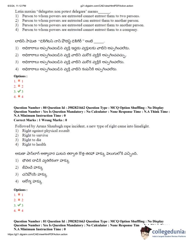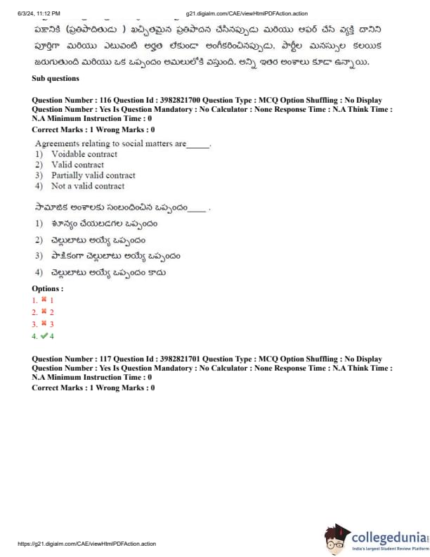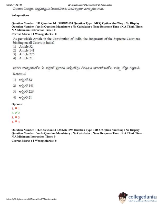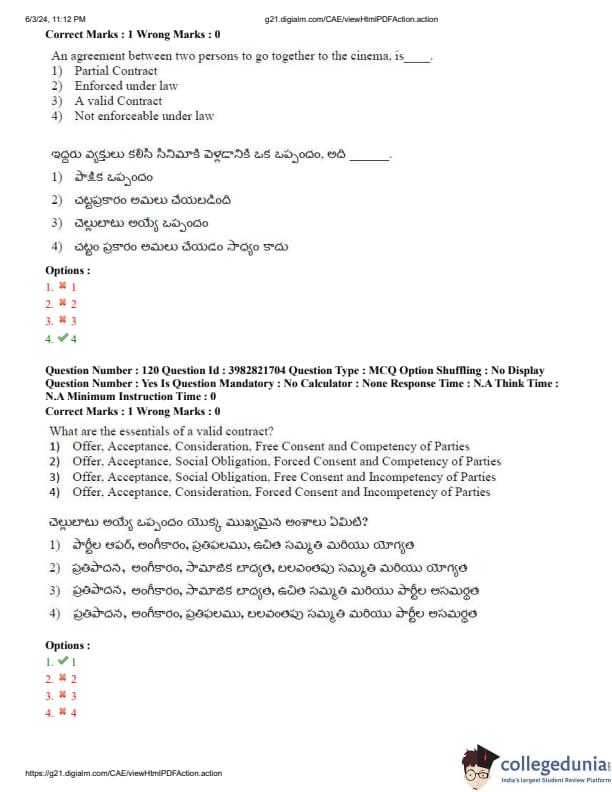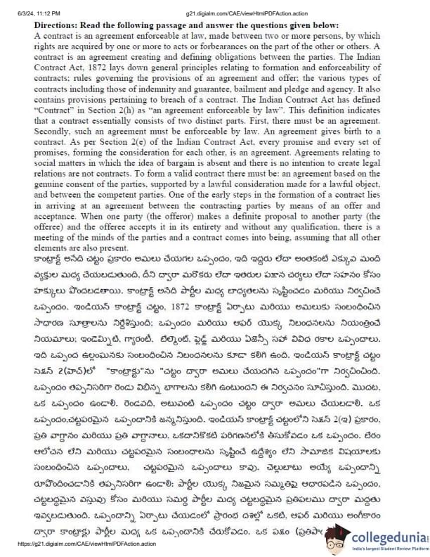 TS LAWCET 2024 3 Years LLB Question Paper with Answer Key (Shift 2)